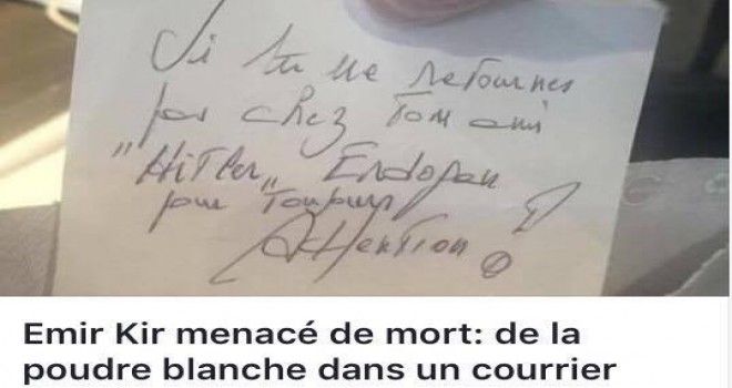 Zarfın içinden çıkan notta ise, “Arkadaşın Hitler Erdoğan’ın yanına dönmezsen kendine dikkat et” ifadeleri yer aldı.