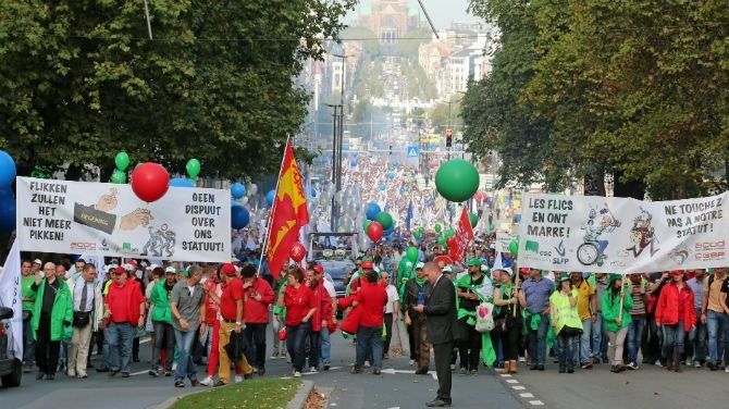 Belçika’daki merkez sağ hükümetin kemer sıkma politikalarını protesto etmek amacıyla bir araya gelen göstericilerin sayısının on binleri bulması bekleniyor.