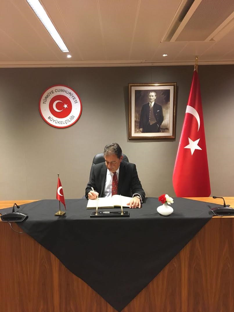 "10 Aralık 2016 akşamı İstanbul'da meydana gelen menfur terör saldırısı sonucunda hayatını kaybedenlerin anısına, Brüksel Büyükelçiliği kançılarya binasında 14 Aralık 2016 Çarşamba günü öğleden sonra bir Taziye Defteri açılmıştır.