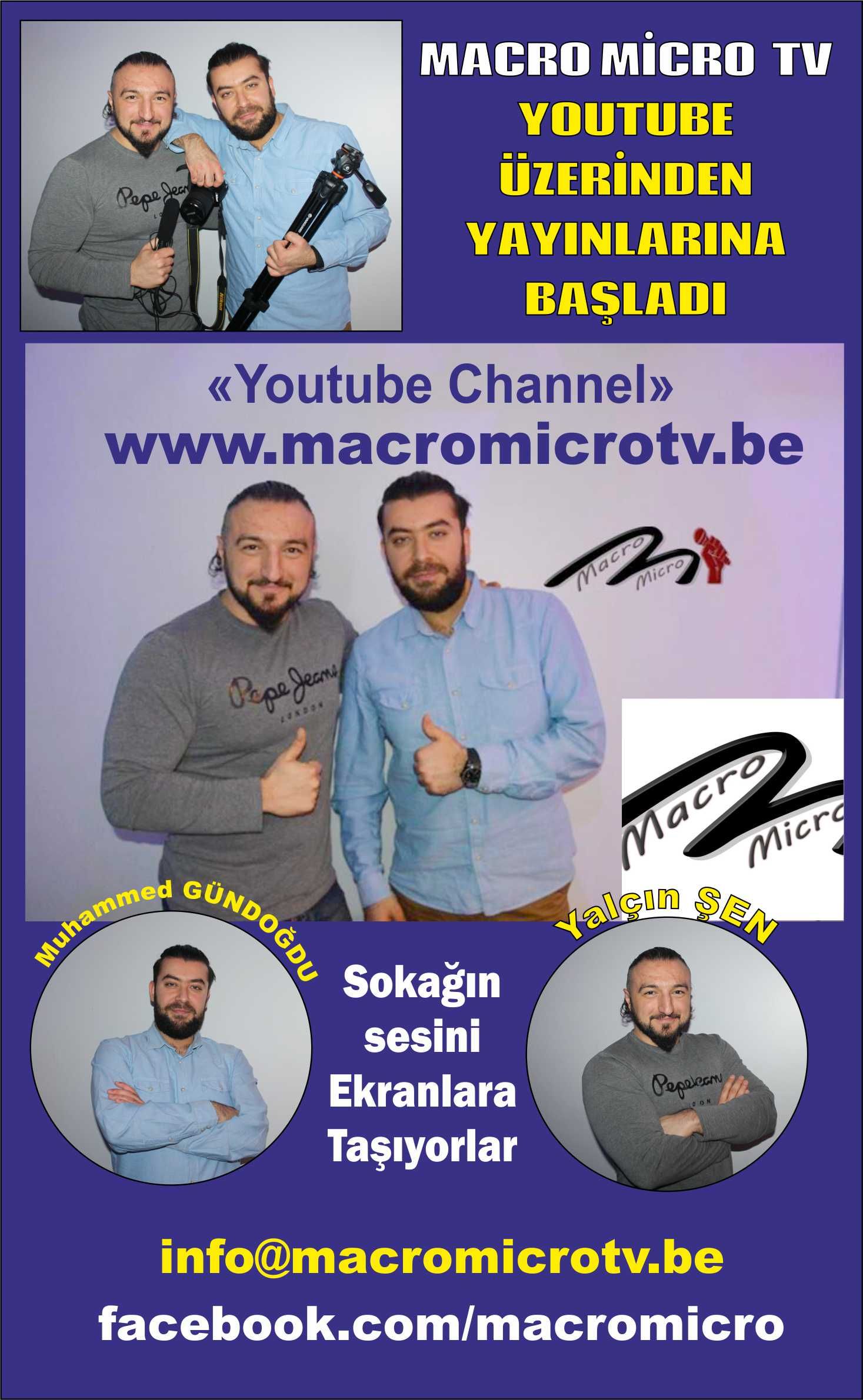 Belçika’da ‘Sokağın sesini ekranlara taşıyoruz” sloganıyla yola çıkan ‘Macro Micro Tv’ Youtube Cannel üzerinden yayınlanmakta.