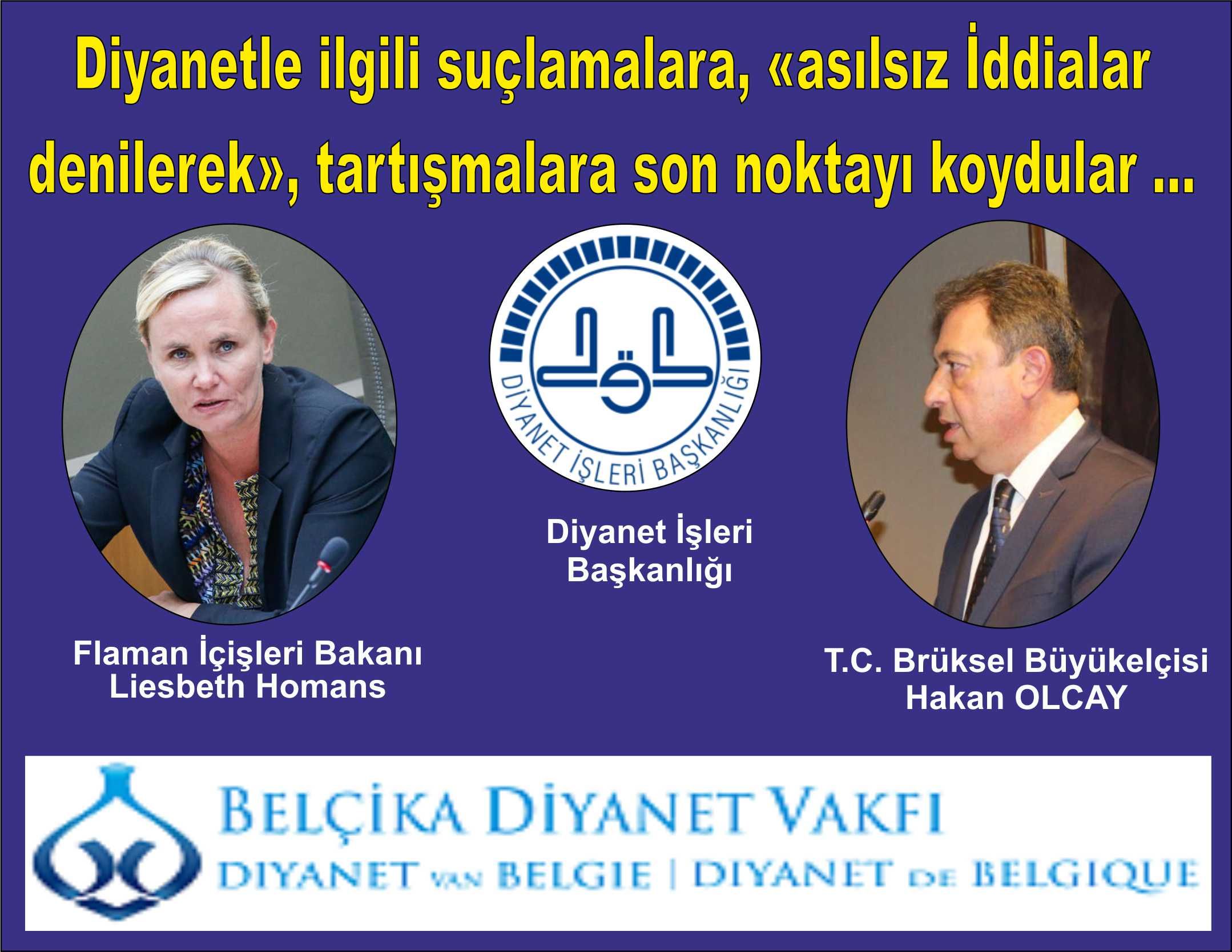 Konuyla ilgili olarak T.C. Brüksel Büyükelçisi Hakan Olcay’da devreye girerek, Flaman Bölgesi İçişleri Bakanı Liesbeth Homans konuyla ilgili bilgiler aktararak, haberlerin asılsız olduğunu, bu konuyla ilgili Diyanet İşleri Başkanlığı ve Belçika Diyanet Vakfı’nın haberleri asılsız haberler olduğu mesajlarını kendilerine aktardı.