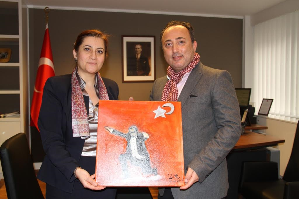 Ziyaret esnasında, Başkonsolosu Dilşad Kırbaşlı Karaoğlu, gazeteci kimliğinin yanı sıra sanatçı kimliğine de sahip olan Kadir Duran tarafından takdim edilen Atatürk protresini büyük bir beğeniyle kabul ederken, Atatürk protesini büyük bir titizlikle çalışma odasında muhafaza edeceğini ifade etti.