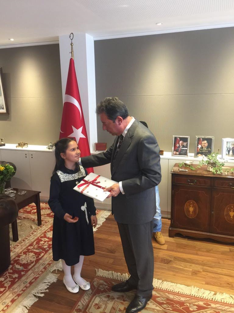 Büyükelçi Hakan Olcay, 23 Nisan Ulusal Egemenlik ve Çocuk Bayramı vesilesiyle makamını bir süreliğine öğrencilere devretti.