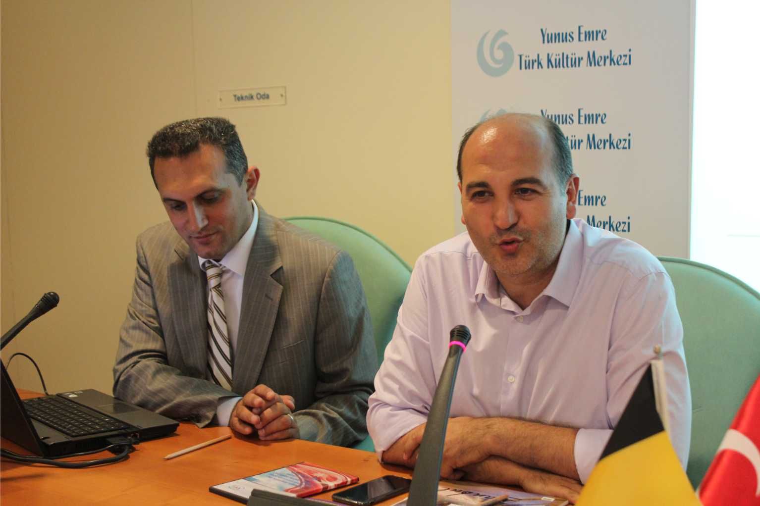 ~~Brüksel’de bulunan ‘Yunus Emre Enstitüsü salonunda gerçekleştirilen konferansa UTV Başkanı Hikmet Çakır, Belçika Azerbaycan Dostluk Cemiyeti Başkanı Ayhan Demirci, BTMB Başkanı Hüseyin Dönmez, Beringen Music Clup Başkanı İsmail Erdoğdu, Gent Türk Ocağı Eski Başkanı Recep Tuncer Sarı, Yunus Emre Enstitüsü Müdürü Rahmi Göktaş, UTV teşkilat sorumluları ve davetliler katıldı.