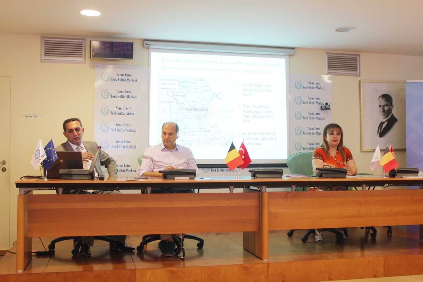 Konuşmacıların Azerbaycan’ın tarihi, kültürü, turizm, ekonomisi hakkındaki geniş bilgileri içeren sunum ve konuşmalarının ardından sorulan sorulara verilen cevaplar ve toplu hatıra resim görüntüsüyle program sona erdi.