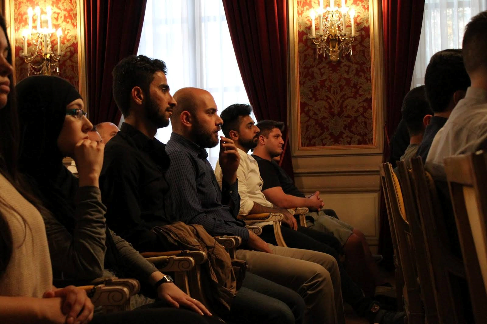 Resul Tapmaz yaptığı konusmasında “Flaman Bölgesinde önemsenemeyecek kadar çok sayıda eğitimli yabancıların bulunduğu ancak diplomalarının olmasına rağmen eğitimlerine göre bir iş bulamadıkları ya da eğitimleri ile ilgili olmayan vasıfsız islerde çalışmak zorunda kaldıkları saptandı. Eğitime başlayan pekçok öğrencinin de bu süreçte çesitli zorluklarla karsı karsıya kaldıkları ve eğitimlerini tamamlayamadıkları gözlendi. Öte yandan, üniversite ve yüksekokullara devam eden eğitimli yabancıların alımının çok düşük sayıda olduğunu gördük. Bu nedenle eğitimini yurtdışında görmüş yabancılar için yoğun Flamanca ve üniverstiteye hazırlık projesi çalışmaları başlattık. Gent Üniversite’si ile birlikte Belçika’ya yeni gelen yabancılar ve mülteciler için çalışmalara katılan bir partner daha bulduk.