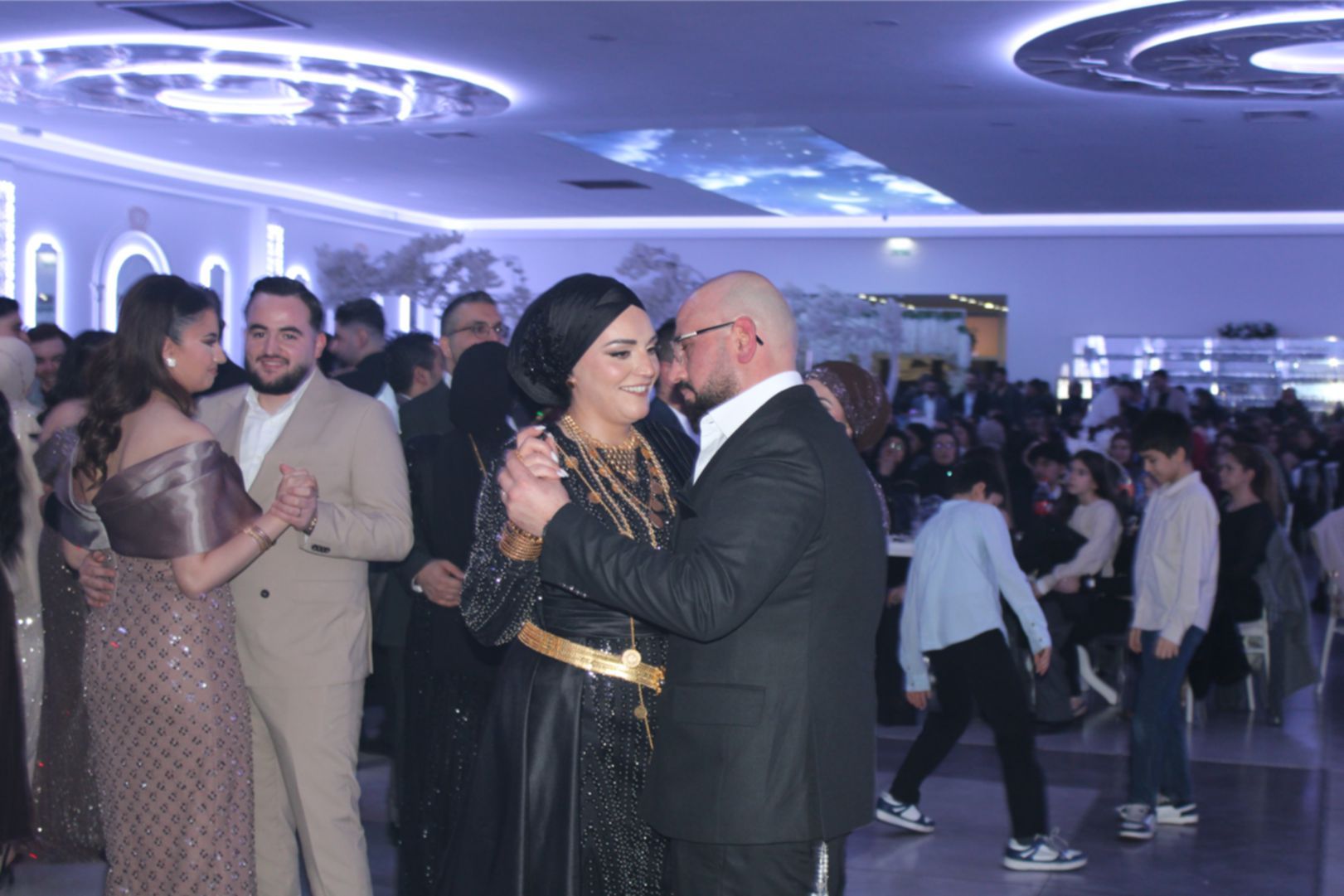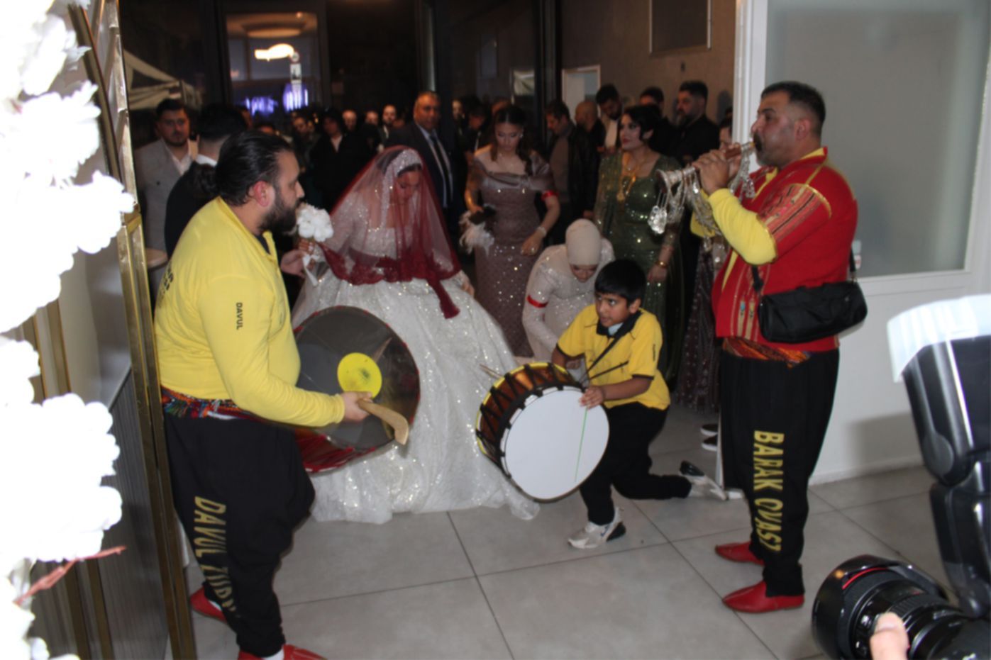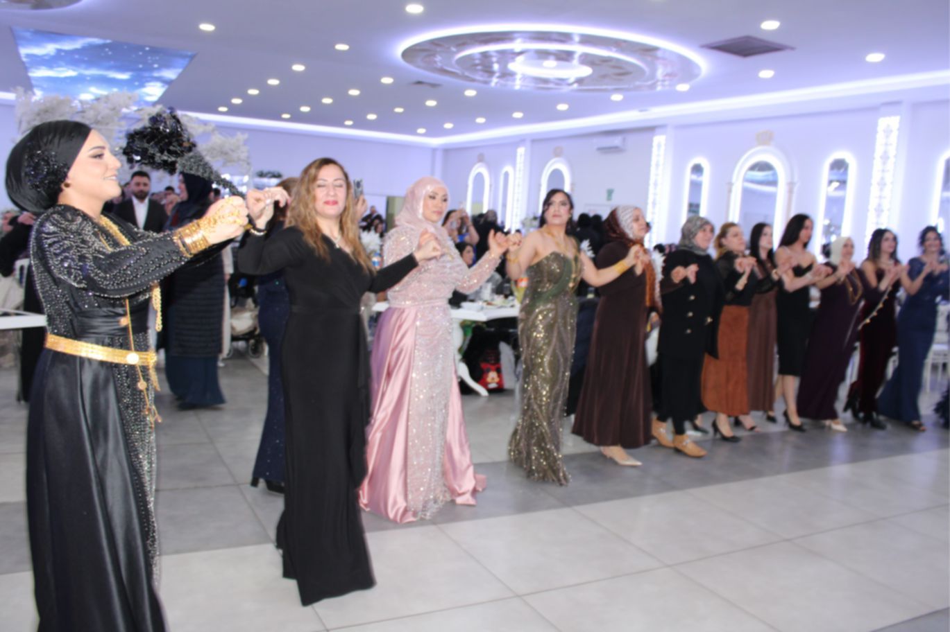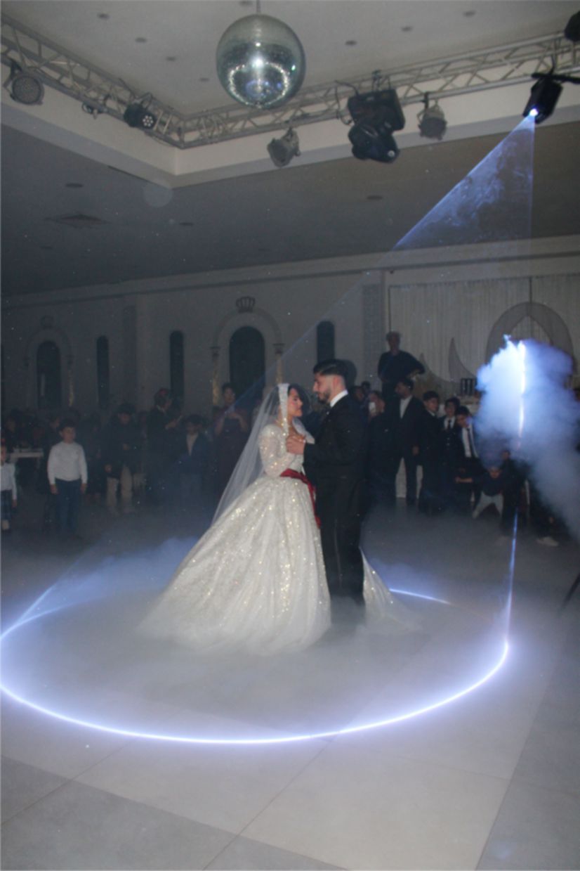 Gelin ile Damat’ın alkışlar ve ‘Barak Ovası’ davullar eşliğinde sahneye gelmesiyle, düğün töreni start aldı. Damat Gelin’e altın bir kolye hediye ederek, gelin’in duvağını açıp alnından öpmesi, alkışlarla karşılandı. Daha sonra, son teknoloji görseller eşliğinde Gelin ile Damat ilk danslarını yaptı. Gelin ile Damat’ın dansına bazı davetlilerde, eşleriyle birlikte eşlik ettiler.