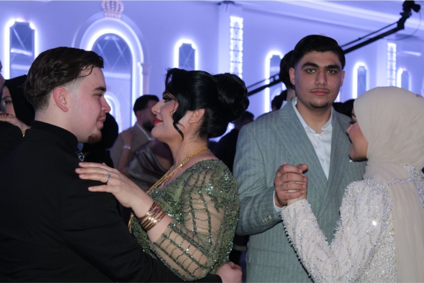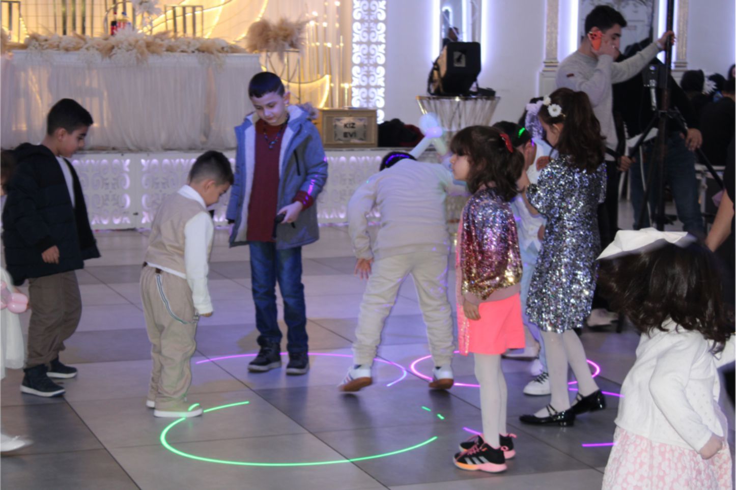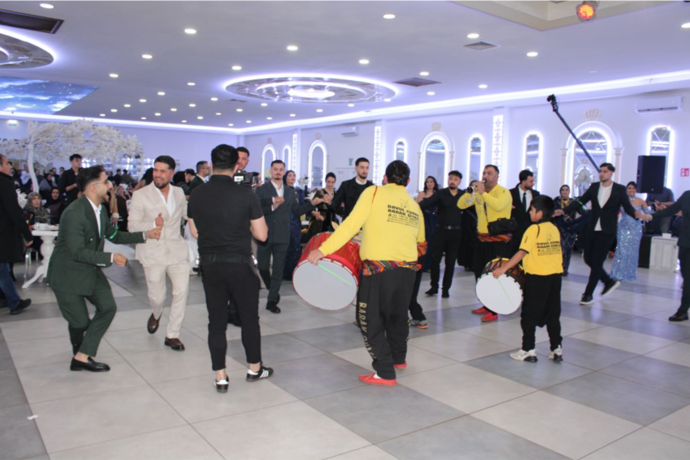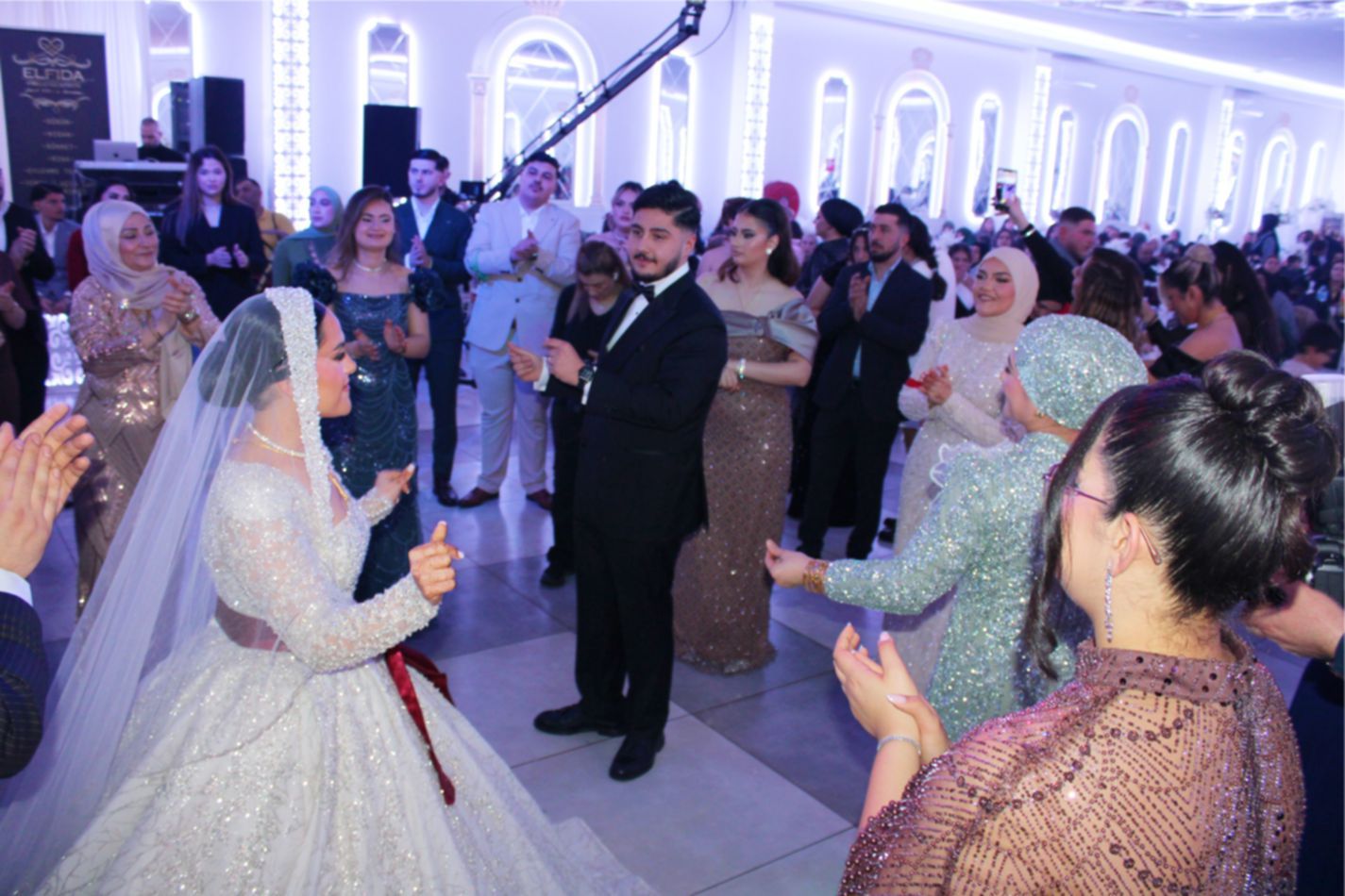 Gelin ile Damat’ın alkışlar ve ‘Barak Ovası’ davullar eşliğinde sahneye gelmesiyle, düğün töreni start aldı. Damat Gelin’e altın bir kolye hediye ederek, gelin’in duvağını açıp alnından öpmesi, alkışlarla karşılandı. Daha sonra, son teknoloji görseller eşliğinde Gelin ile Damat ilk danslarını yaptı. Gelin ile Damat’ın dansına bazı davetlilerde, eşleriyle birlikte eşlik ettiler.