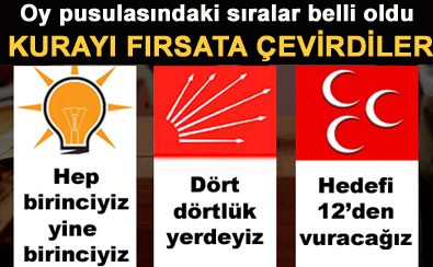 12 Haziran 2011'de yapılacak seçimlerde kullanılacak oy pusulasında AKP 1, CHP 4, MHP ise 12'nci sırada yer alacak.