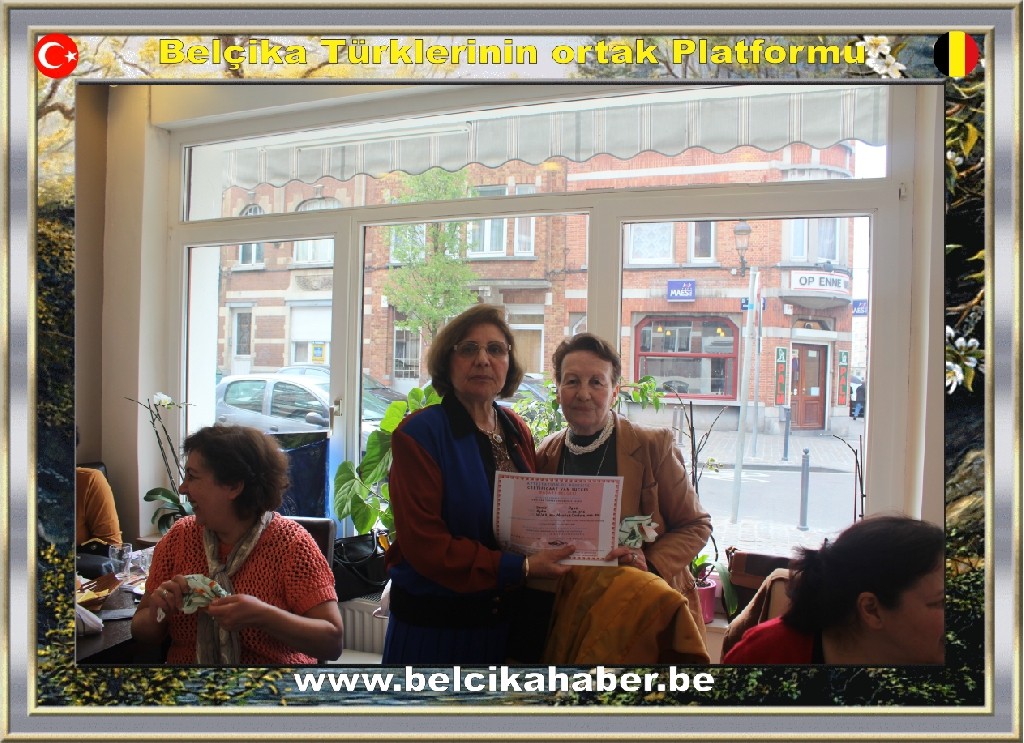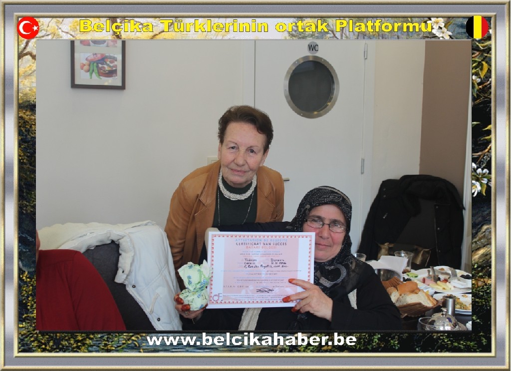 Kısa adı BTKB Belçika Türk Kadınlar Birliği, Başkan ve Kurs Eğitmeni Leyla Teker'in öncülüğünde 'El Sanatları Kursu'nu tamamlayan, kursiyerlerine 'Köşem Kahvaltı Salonu'nda sertifikalarını verdi.