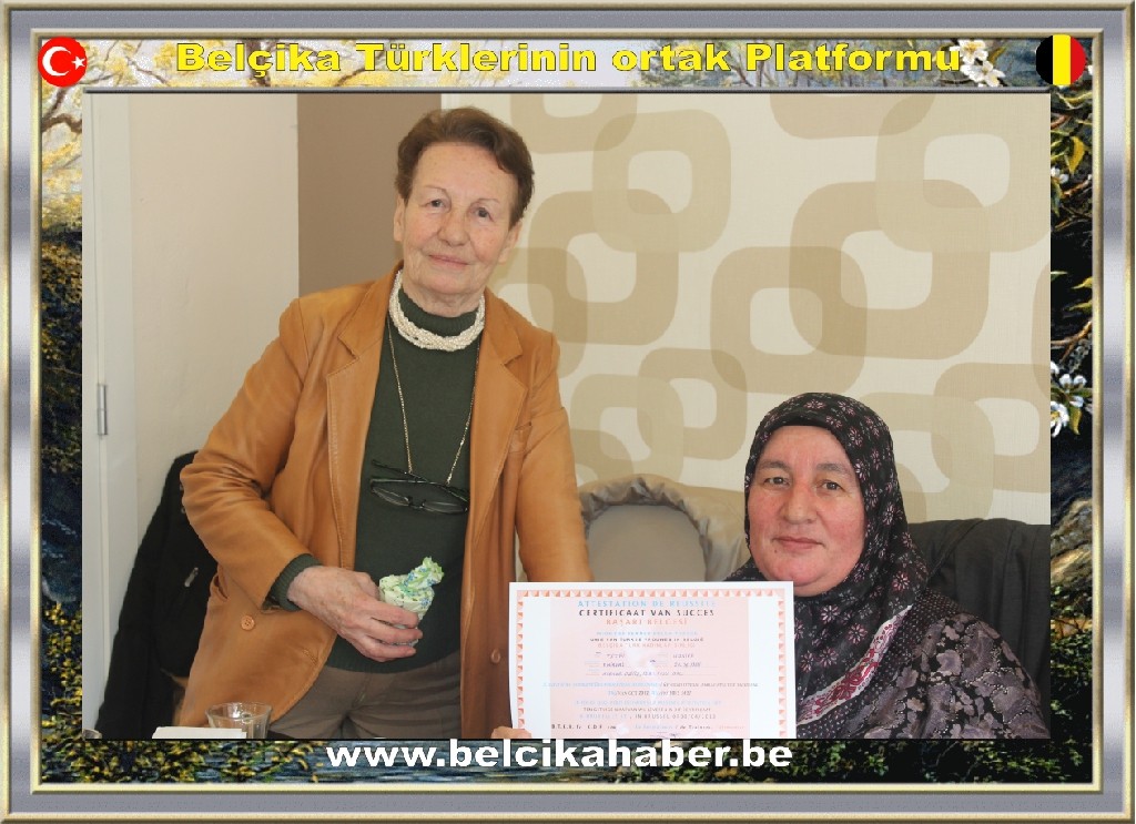 Sertifika verme törenini konuklar Schaerbeek Belediye Meclis Üyesi Döne Sönmez, Belçika Haber Be. Halkla İlişkiler Müdüresi Zerrin Aydın, Aycan Duruoğlu, Sevim Çatal, Zehra İnce, Cemile Düzenlioğlu ve Perrin Karakuzu birlikte izlediler.