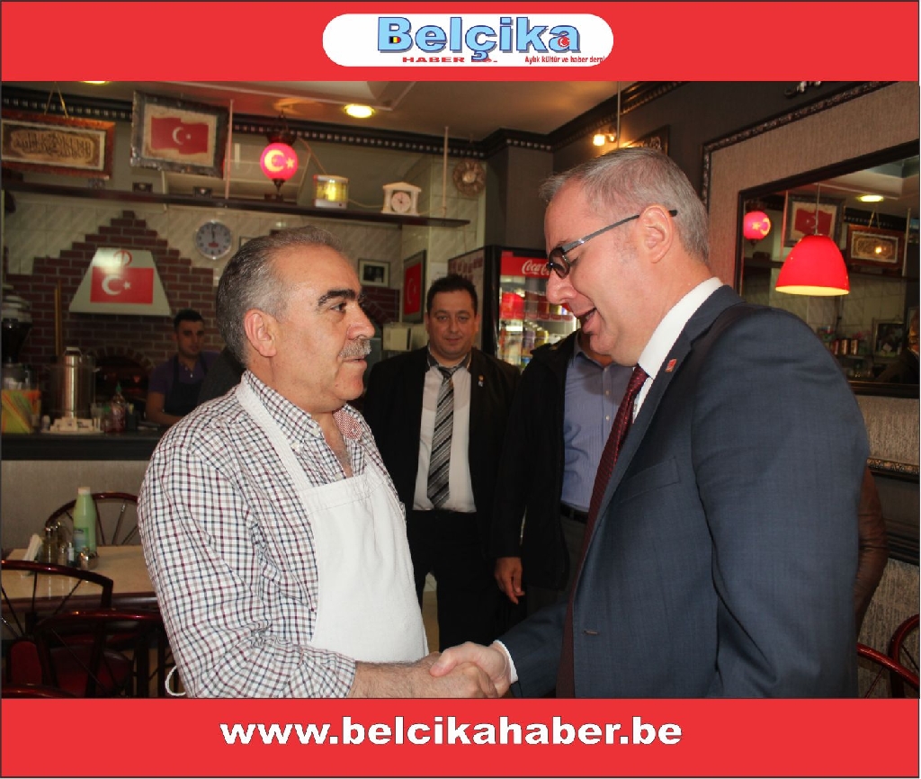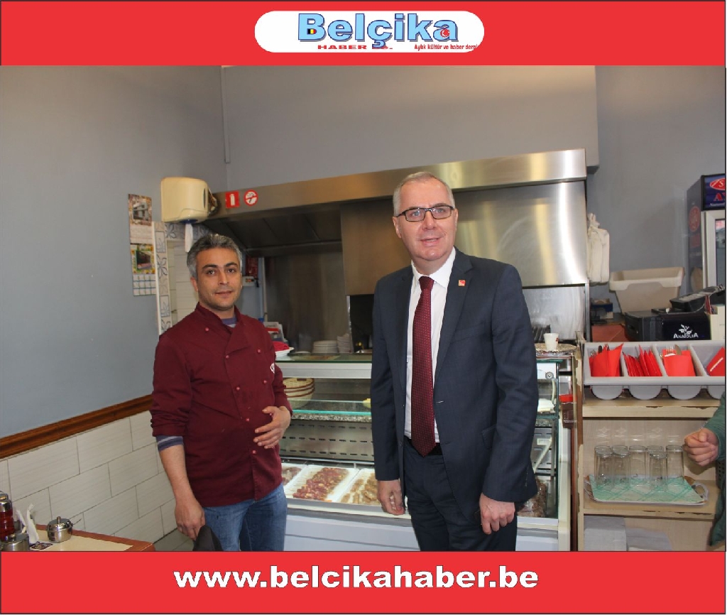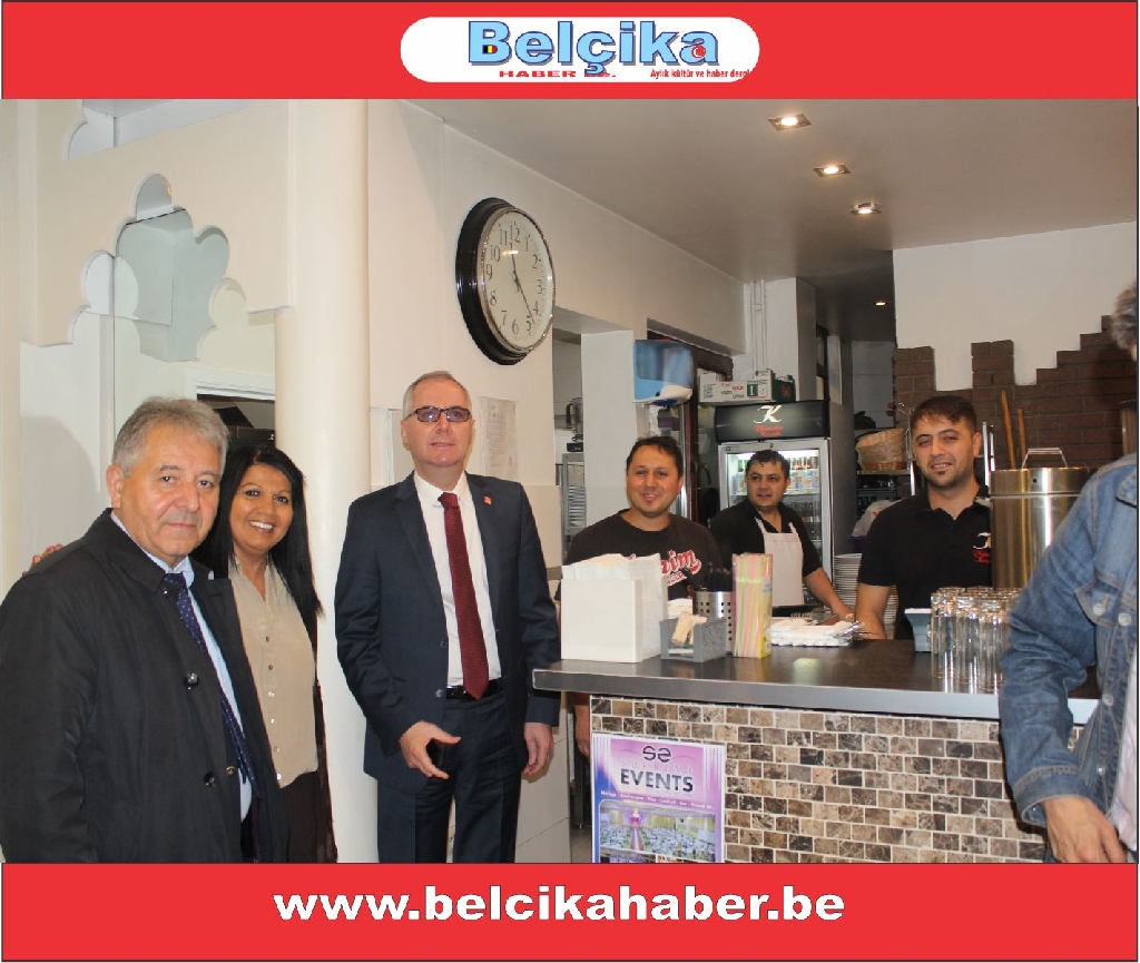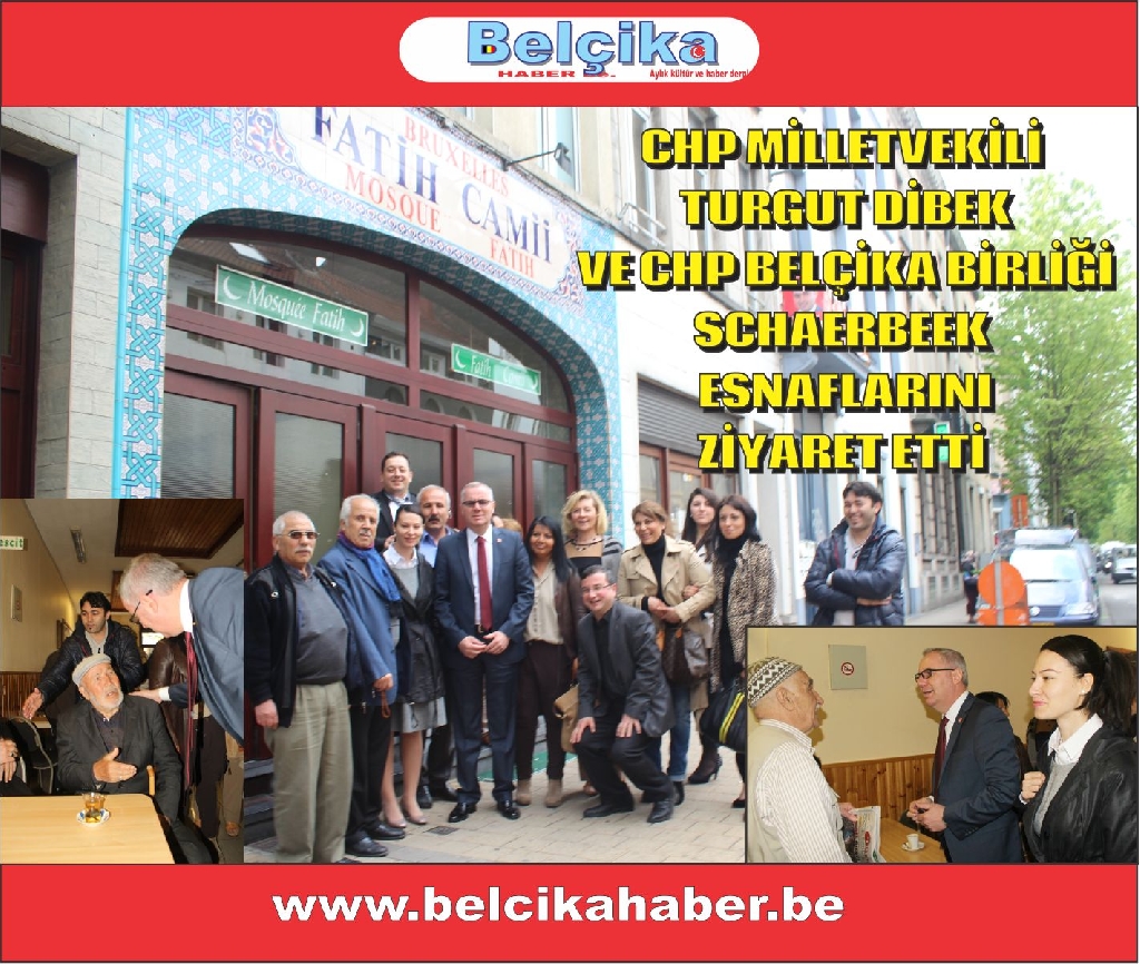 Görüşmelerde bulunmak üzaere ve CHP Belçika Birliği'nin yeni merkez binasının açılışına katılan Kırklareli CHP Milletvekili Turgut Dibek. 1 Mayıs'ta açılışa katılıp 2 mayıs'ta CHP Belçika Birliği üyeleriyle birlikte yaptığı kahvaltı sonrası, Schaerbeek Esnafını ziyaret ederek halkın sorunlarını dinledi.
