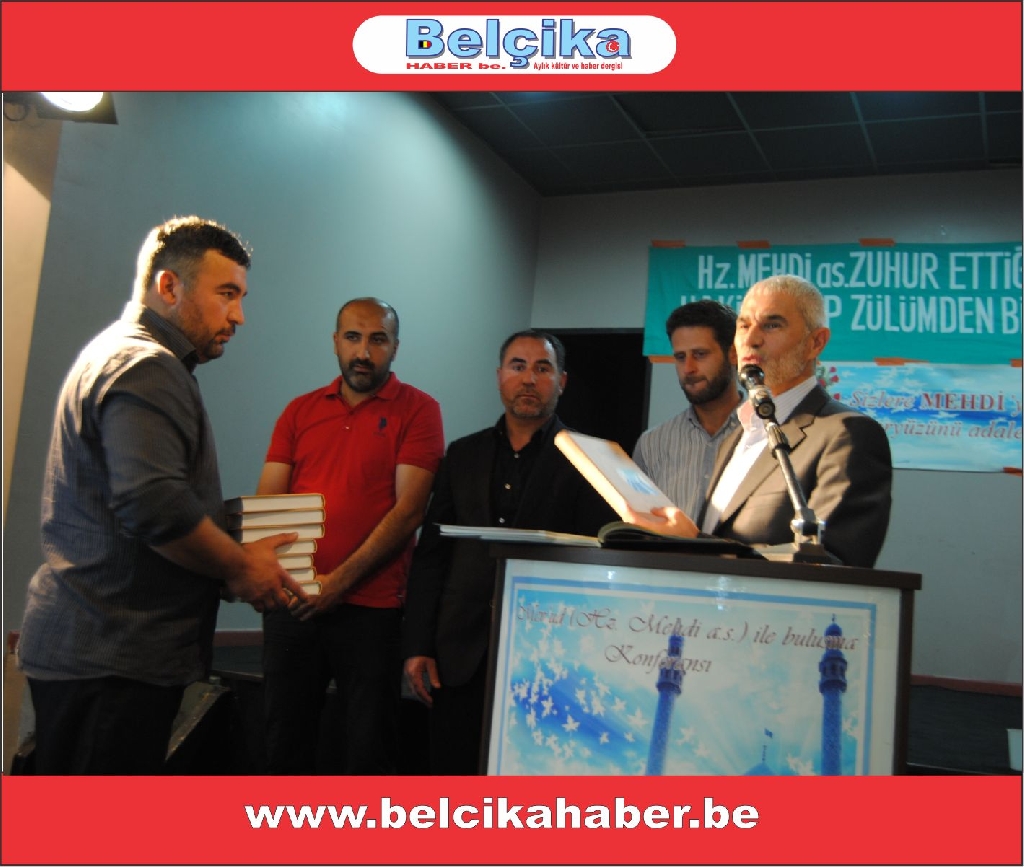 Brüksel Ehlibeyt İslam ve Kültür Merkezi Başkanı İsmail Dorbar, Avrupa Ehlibeyt Gençlik Birliği Başkanı Avukat Nizamettin Türkyılmaz, Türk Dernekler Birliği (UTV) Sekreteri Enes Çimen ve Genel Yayın Yönetmenimiz Celil Gündoğdu'ya 'Beklenen Mehdi' adlı kitap takdim etti.