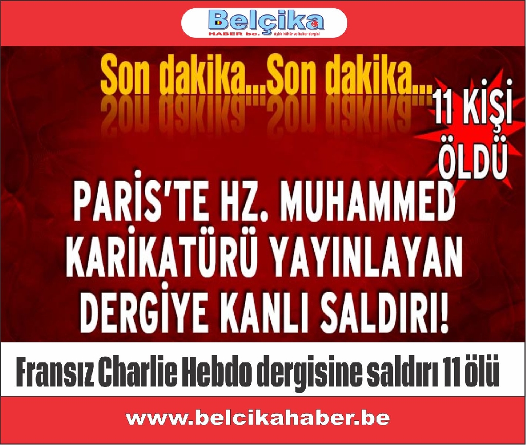 Fransa’da yayın yapan haftalık karikatür dergisi Charlie Hebdo‘nun merkezine silahlı saldırı düzenlendi. En az 11 kişinin öldüğü, 5′i ağır çok sayıda kişinin de yaralandığı bildiriliyor. Söz konusu dergi Müslüman alemini kızdıran çirkin karikatürleriyle biliniyordu.