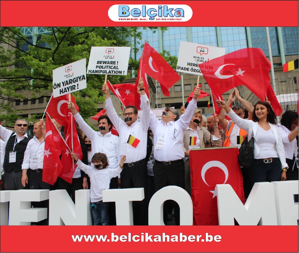 Bizler Belçikalı Türkler olarak, buradan bir kere daha vurgulamak istiyoruz ki:-İfade özgürlüğü Avrupa’nın en temel değerlerinden biridir.-İfade özgürlüğü anayasal bir haktır. Bizler bu hakkımızı kullanmak istiyoruz.-Bu haktan, yurttaşların bir kısmını mahrum etmek, çifte standarttır.Bunu kabul etmemiz mümkün değildir.