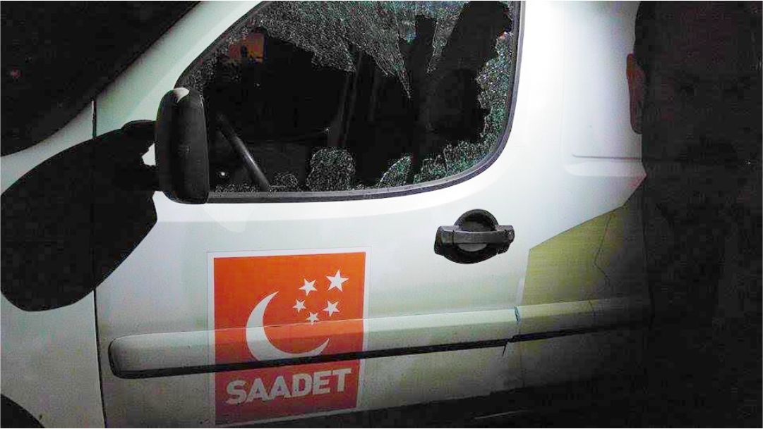 Ankara’da seçim çalışmalarını aralıksız sürdüren Saadet Partisi’ne yönelik saldırı düzenlendi.