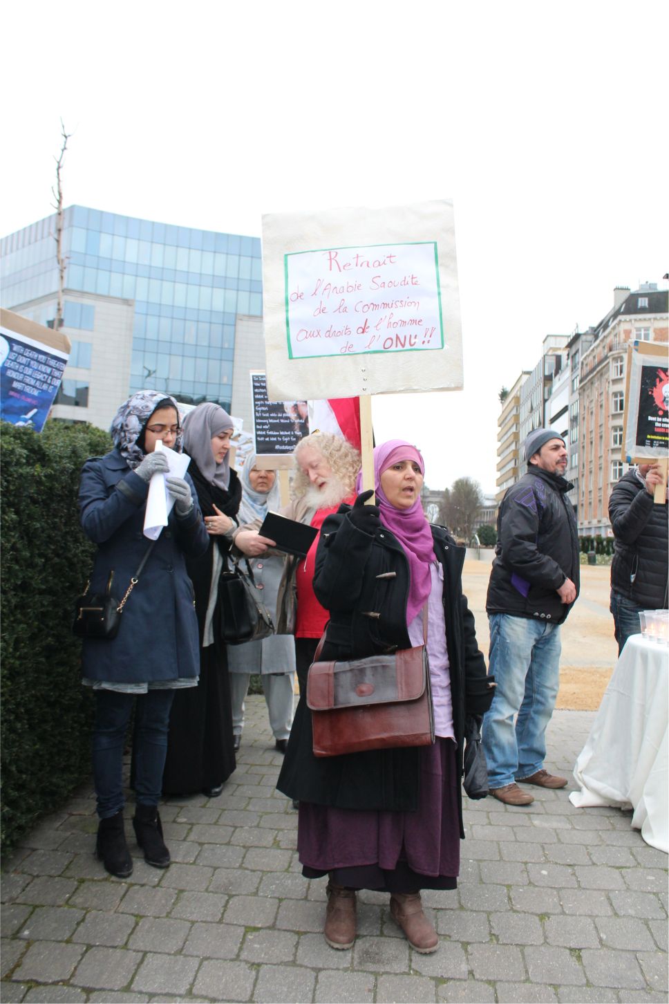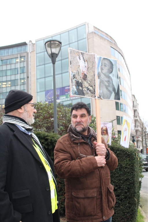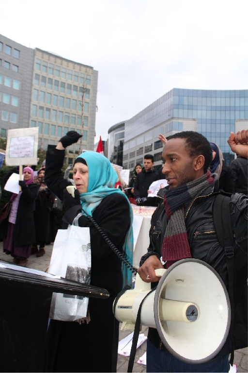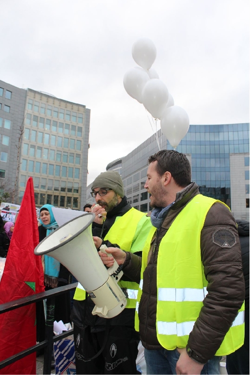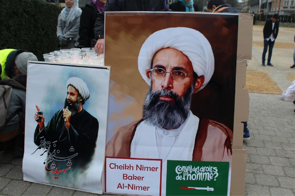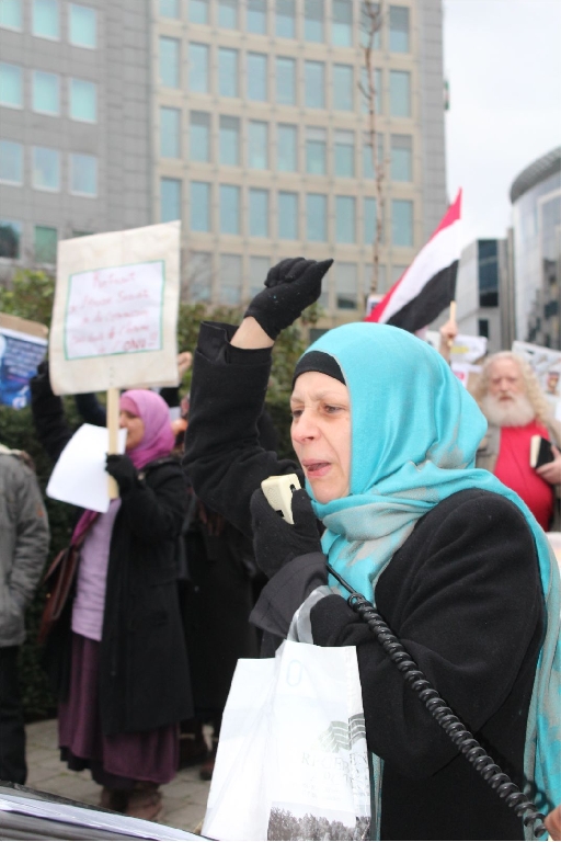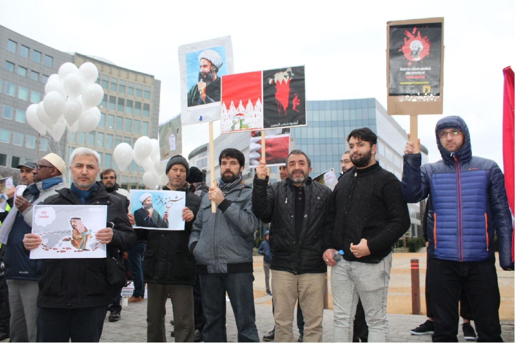 AB Binalarının bulunduğu meşhur Shuman meydanında bir araya gelen İran, Irak, Suriye, Lübnan, Pakistan, Azerbaycan, Endenozya, Afganistan, Nijerya, Bahreyn, Yemen, Türkiye ve Filistinli onlarca kişi ellerinde Ayetullah Nemr, Enserullah Lideri Abdulmelik el Husi ve Nijerya Şii Lideri İbrahim Zakzaki’nin resimlerini taşıdılar.