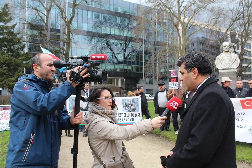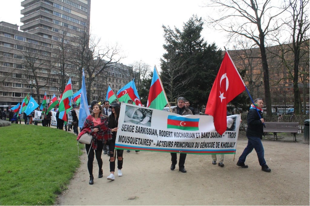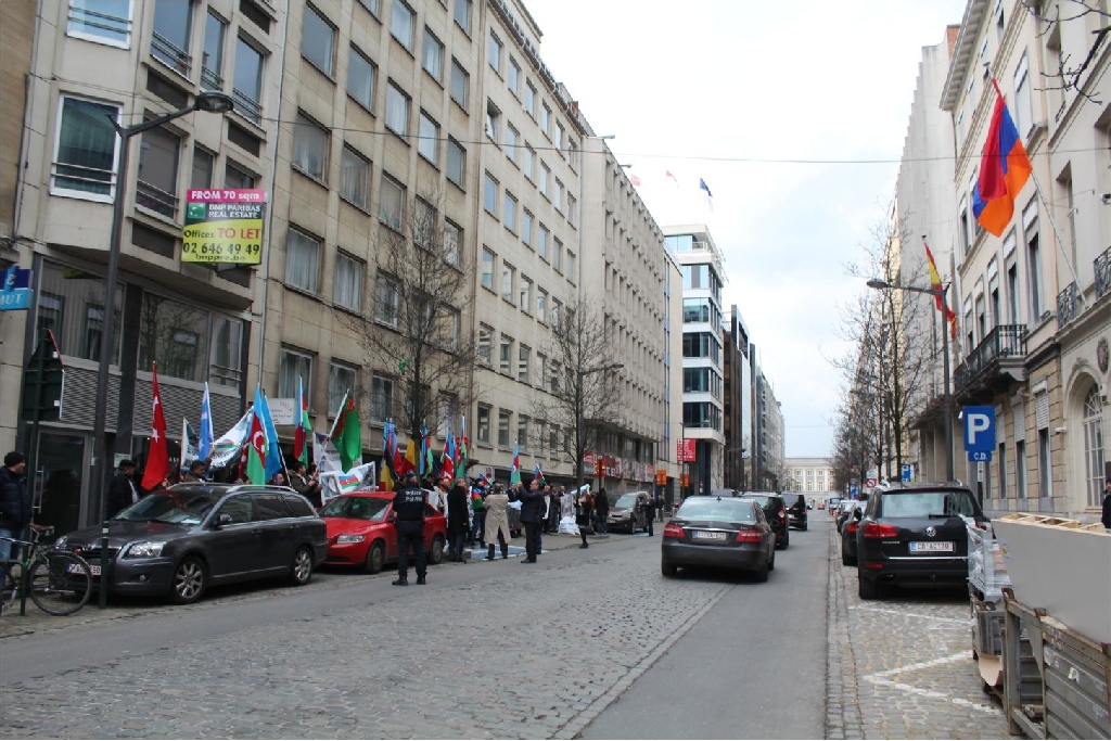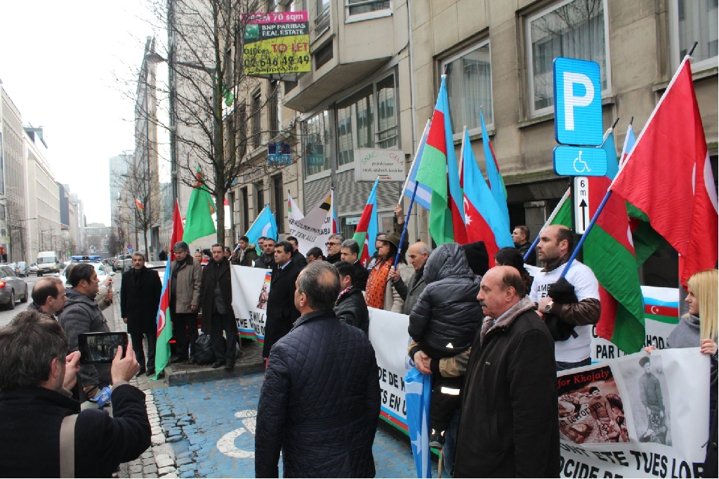 Azerbaycan Belçika Dostluk Cemiyeti tarafından Brüksel ‘Square De Meeus’ organize edilen mitinge Dünyanın değişik kıta ve ülkelerinden gelen Dernek ve Birlik Başkan ve yöneticileri Türk dünyasının bayraklarıyla katılarak, ‘Hepimiz Türküz’,‘Hocalı’ya Adalet’, ‘Hepimiz Karabağız’, ‘Hepimiz Hocalıyız’,‘Katil Ermanistan, Katil Sarkisyan’ sloganlarıyla gösteri yaptılar.