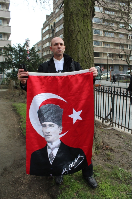 Mitinge katılanlar İngilizce, Fransıca ve Flamanca seslenerek, hazırladıkları bildirileri tüm izleyenlere dağıttılar.