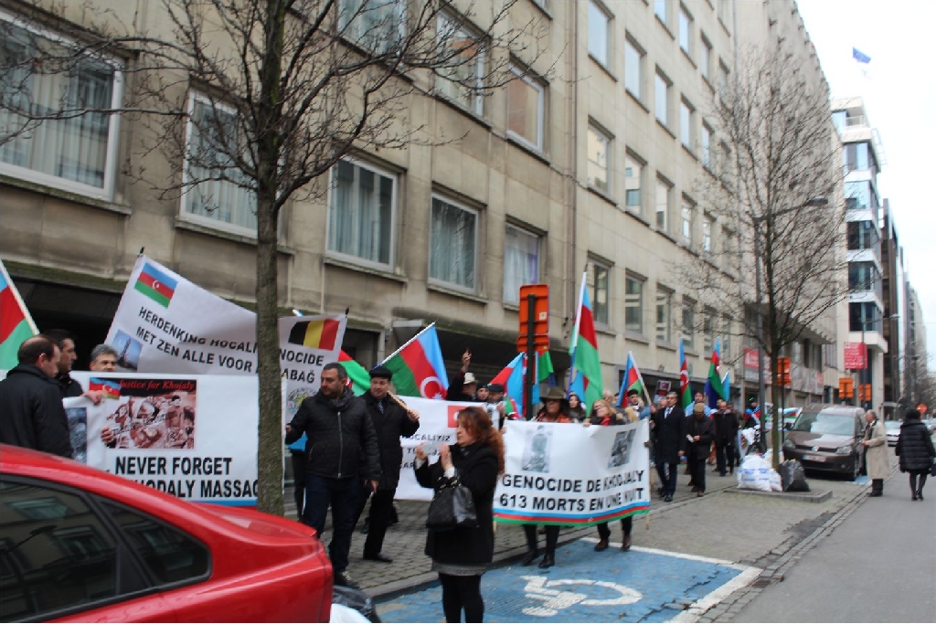 Ermenilerin yakın tarihimiz 1992 yılında Karabağ’da yaptıkları Hocalı Soykırımı’nın 24. yıldönümünde, Azerbaycan Belçika Dostluk Cemiyeti AB'nin başkenti Brüksel'de, ‘Hocalı’ya Adalet’ adlı bir miting ve Yürüyüş gerçekleştirdi.