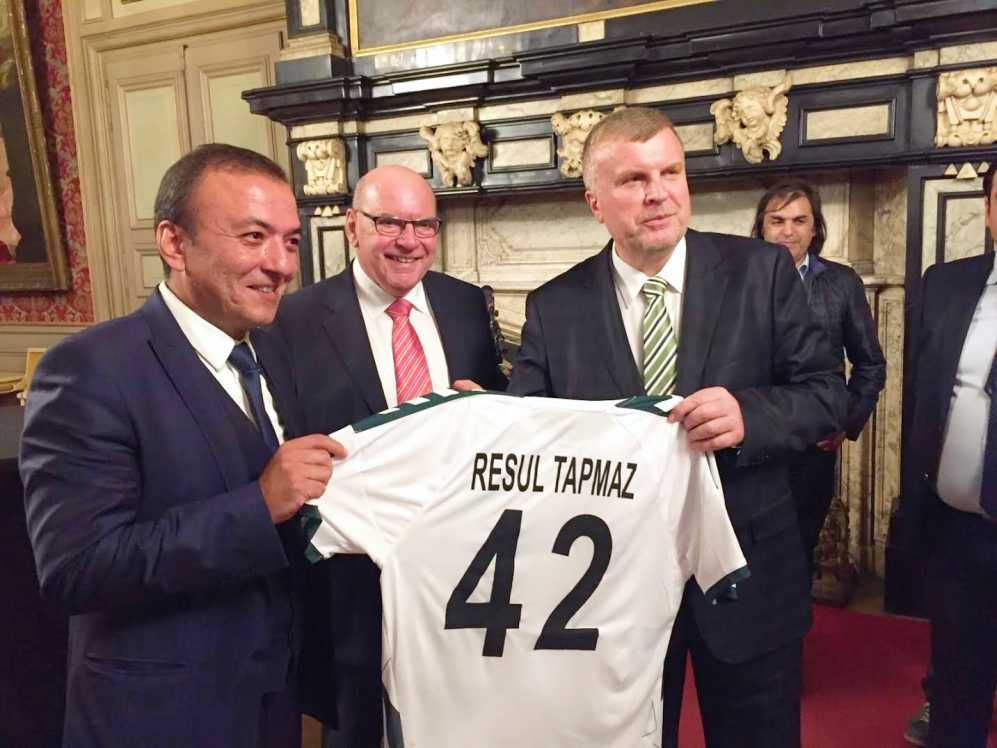 Gent Büyükşehir Belediye Başkan Yardımcısı. Resul Tapmaz, Belediye Başkanı Daniël Termont ile birlikte Atiker Konyaspor Başkanı Ahmet Şan, Teknik direktör Aykut Kocaman ve Yönetim Kurulu üyelerini Belediye sarayında karşıladı.