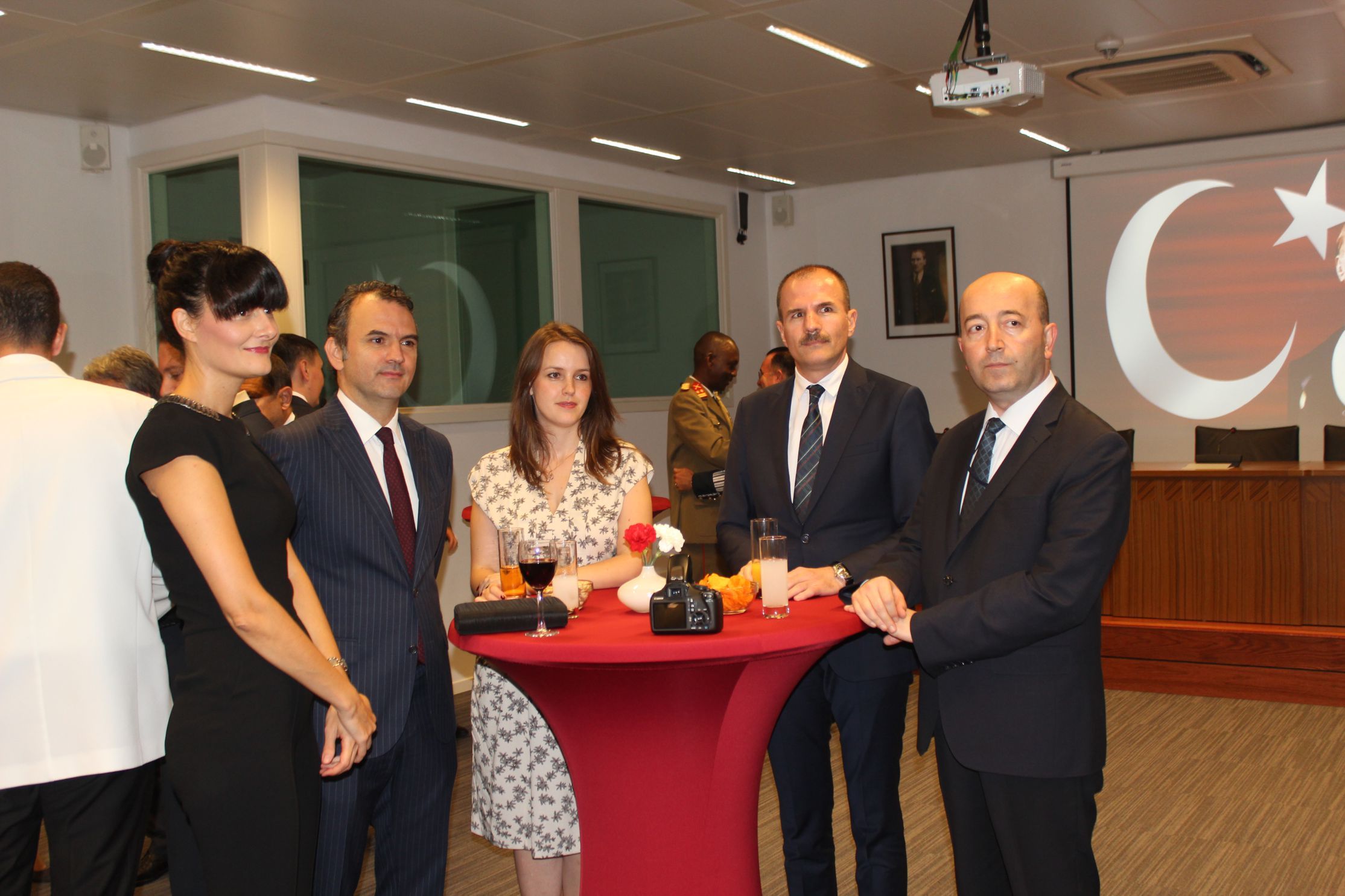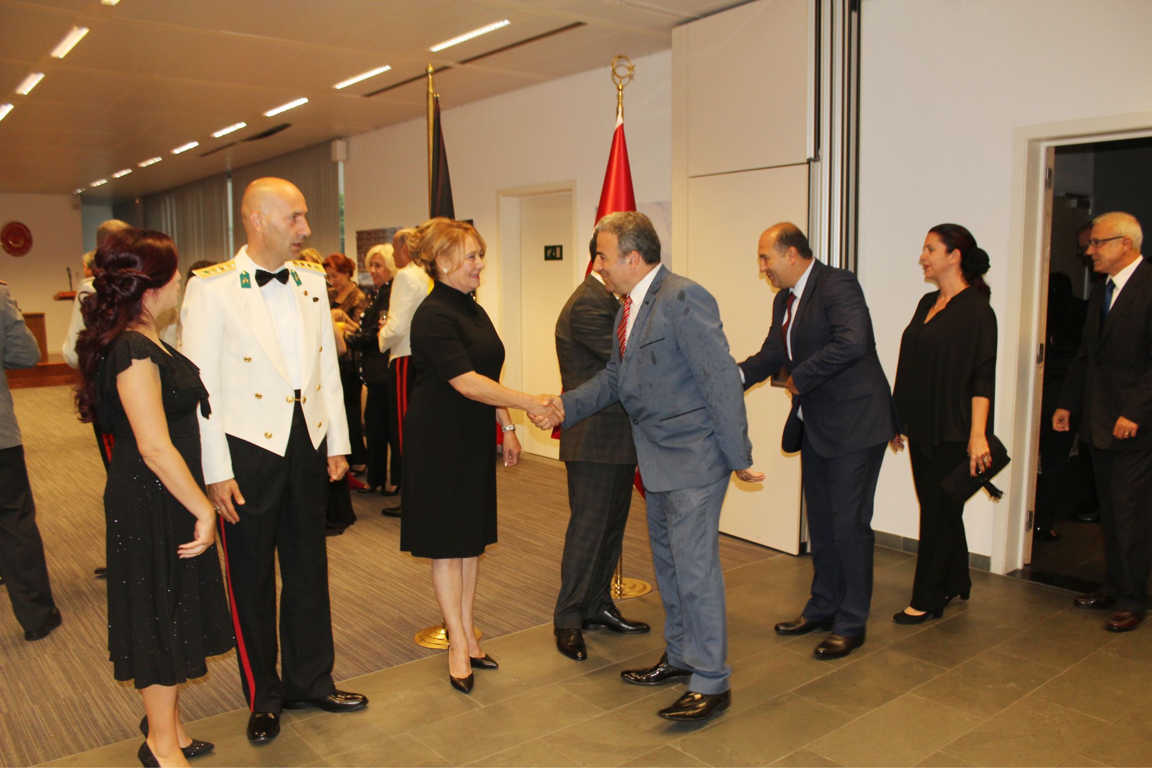 T.C. Brüksel Büyükelçisi Hakan Olcay’ın himayesinde gerçekleştirilen resepsiyona Nato Genel Sekreter Yardımcısı Tacan İldem, Brüksel Başkonsolosu Dilşad Kırbaşlı Karaoğlu, Brüksel Başkonsolosluğu Konsolosu Yavuz Aybaş, KKTC Temsilci Büyükelçi Damla Güçlü, TMR Başkanı Koramiral Serdar DÜLGER, TMR Bşk. Emir Subayı P. Bnb. İbrahim DOĞRUSÖZ, NMR Başkanı Tuğgeneral Sezai ÖZTÜRK,yanında kordiplomatik, askeri erkan, çeşitli sivil toplum kuruluşları, Belçika’daki Türk temsilcilikleri mensupları ve Belçika resmi makamlarından yoğun katılım oldu.