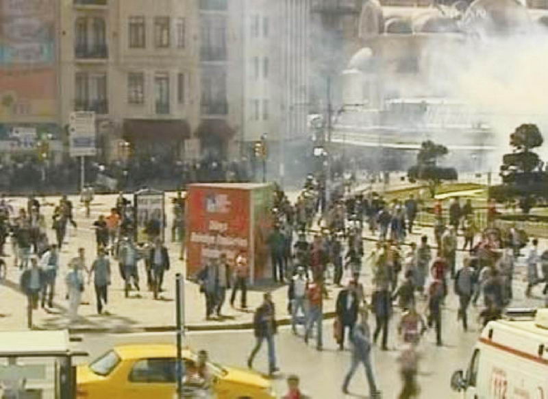 Taksim'de göstericiler ile emniyet güçleri arasında olaylar çıktı. Jandarma da olay yerinde... İstiklal Caddesi ve Sıraselviler'in girişinde göstericilerle polis arasında arbede çıktı. Taksim şu an da toz duman kaçışan insanlar ve güvenliği elden bırakmak istemeyen polis memurları dikkat çekiyor. Polisler göz yaşartıcı bomba kullandı. Bayılanların olduğu görülüyor. İstanbul Emniyet Müdürü Celalettin Cerrah da Taksim'de. Polis, uyarılara rağmen meydandan ayrılmayan gruba coplarla müdahale ediyor. Polis panzerleri grubu dağıtmak için devriye geziyor... Ãok sayıda kişinin gözaltına alındığı gözleniyor...
