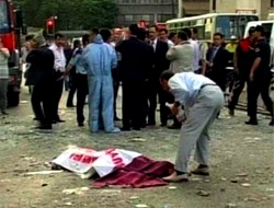 Başkentin en işlek merkezlerinden Ulus'taki Anafartalar Ãarşısı'nın önündeki patlamanın arkasında canlı bomba çıktı. Canlı bombanın eylemde kullandığı A 4 tipi patlayıcıları sırtında taşıdığı kesinleşti. Saldırı sırasında parçalanan eylemcinin kimliği de polis tarafından saptandı. Hain saldırıyı gerçekleştiren eylemciye ait olduğu sanılan parçalar Adli Tıp'ta bulunuyor. İLK İŞARET ÃUKURDAN Polis ilk inceleme sonucunda olay yerinde bir çukur olmadığını belirledi. Bu durumun bombanın bir yere bırakıldığı ihtimalini sıfıra indirdiğini belirten polis, "Yere konulsaydı, derin bir çukur açılırdı. Bomba taşınırken patlamış olabilir" dedi. Gece geç saatlere kadar olay yerinde bulunan iki bacağın kime ait olduğunun da tespit edilememesi, canlı bomba ihtimalini gündeme getirdi. Polis yetkilileri, bacakların canlı bombaya ait olması olasılığının yüzde 90 olduğunu belirtti.