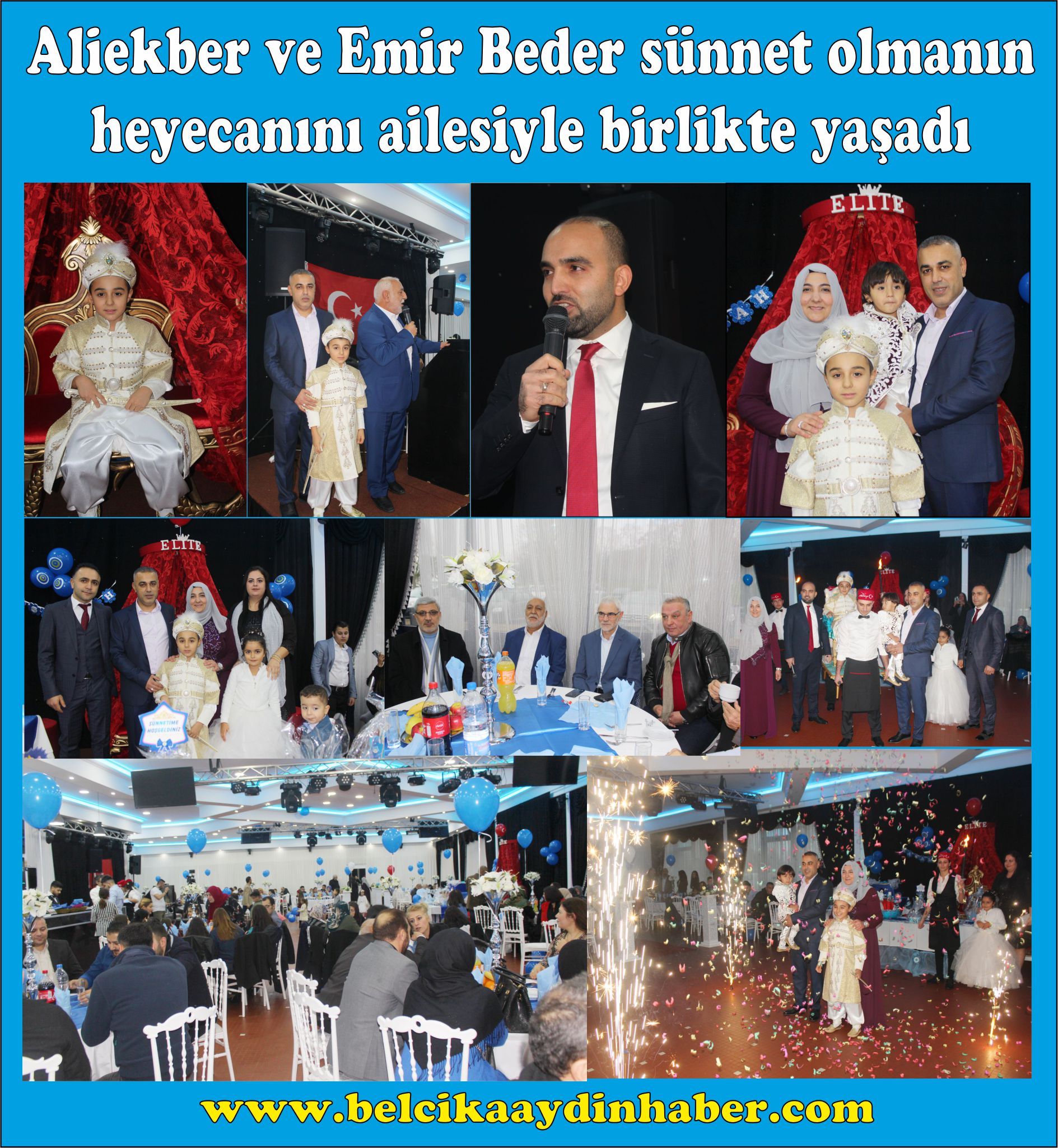 Elite Düğün Salonu'nda gerçekleşen törende, Alev ve Özkan Beder’in evlatları Aliekber ve Emir sünnet törenlerinde, kirveleri Betül ve Tolgahan Yaşar’la birlikte, salona ilahiler ve tahtlar eşliğinde geldiler.