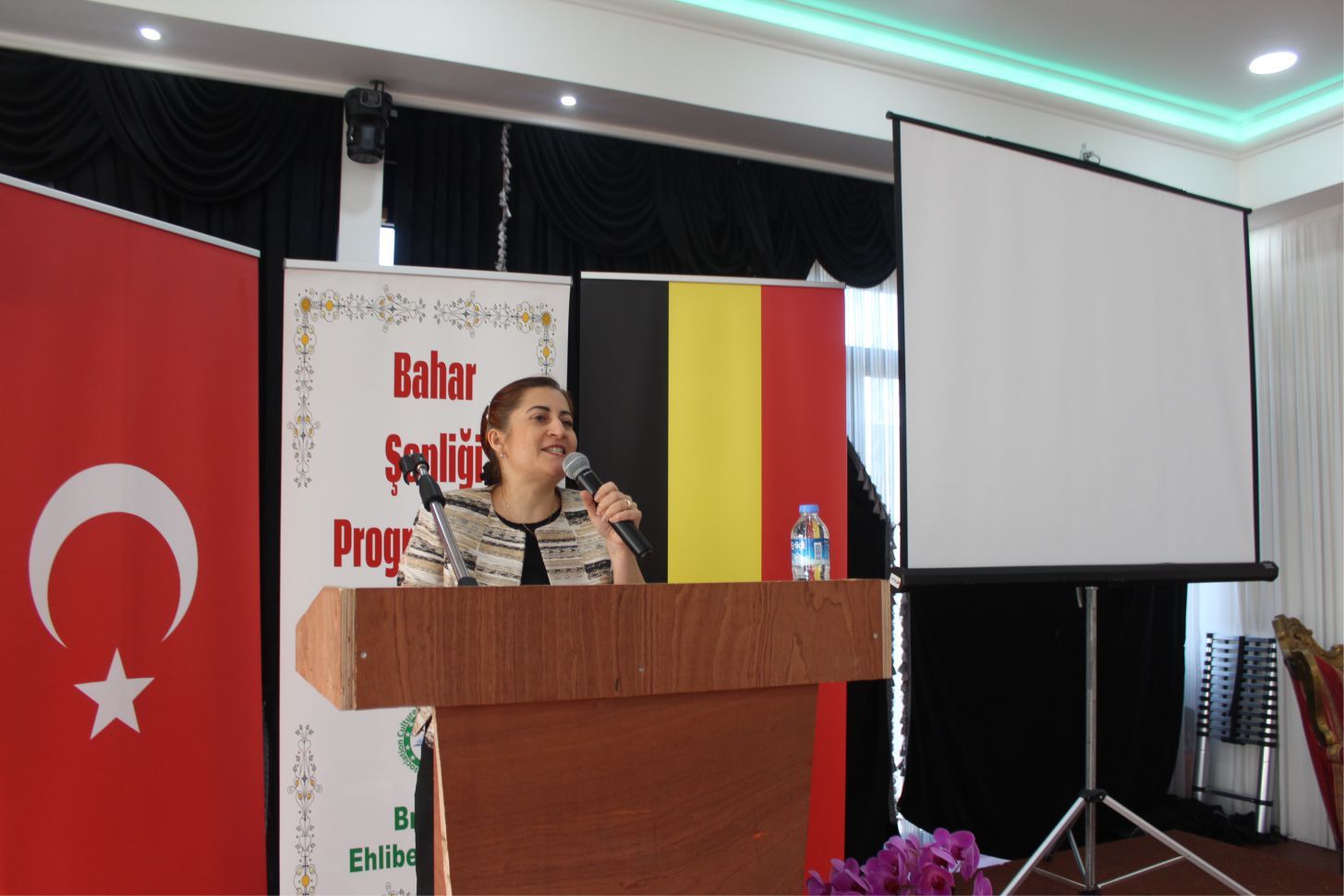 Başkonsolos Dilşad Kırbaşlı Karaoğlu ise yaptığı selamlama konuşmasında: “Bugün yine bir Nevruz kutlamasında bir araya geldik. Bu bayram da Belçika Türk Toplumunun yeniden doğuşu olsun. Siz etkinlik yapın biz her zaman gelmeye hazırız. Bu Nevruz olur bir başka etkinlik olur birliğimiz ve beraberliğimiz için biz her zaman yanınızda olacağız .  Güzel bayramlarımızı vesile ederek, birliğinizi beraberliğinizi koruyarak dostluk ilişkilerinizi sürdürün. Allah ağzınızın tadını bozmasın. Daha nice etkinliklerde beraber, gönül gönüle olmak dileklerimle nice huzurlu ve bereketli bayramlar diliyorum” dedi.