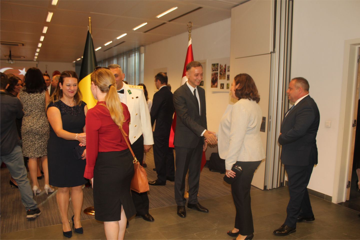 Türkiye'nin Brüksel Büyükelçisi Zeki Levent Gümrükçü ile Askeri Ataşe Albay Haluk Erdem'in ev sahipliğinde düzenlenen resepsiyona, diplomatik misyonların askeri ataşe ve temsilcileri, sivil toplum örgütlerinin temsilcileri ve davetliler katıldı.