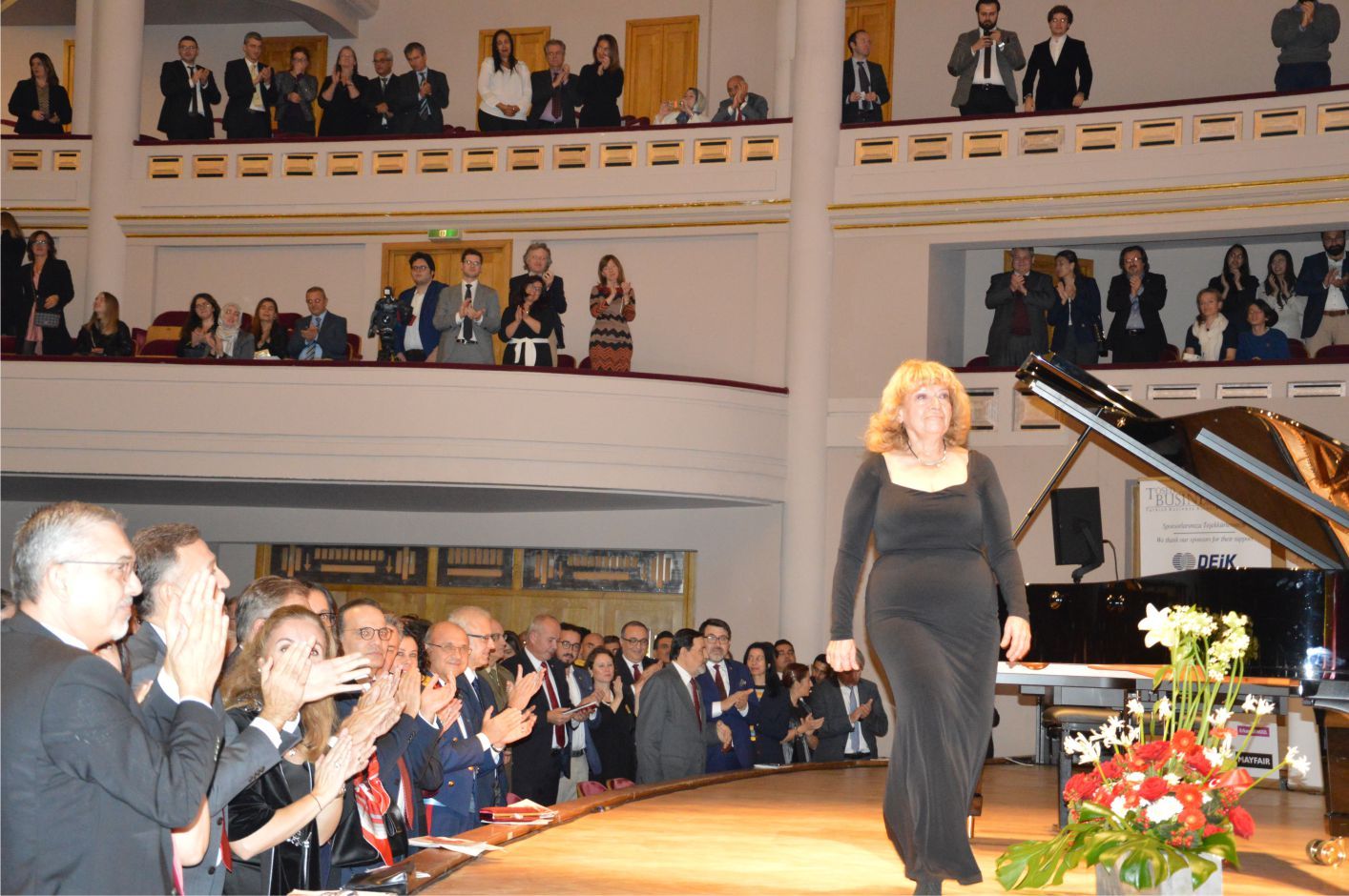 Bu salondaki ilk konserini 1959 yılında şef Herman Scherchen yönetimindeki Belçika Ulusal Orkestra (ONB) ile veren sanatçı, konserde Beethoven, Schubert/Liszt, Chopin, Saygun ve Stravinsky’nin eserlerini çalarak unutulmaz bir konsere daha imza attı. Konser bitiminde Büyükelçi Zeki Levent Gümrükçü ve Tösed Başkanı Melih Kızavul bir buket çiçek ve bir plaketi sanatçı İdil Biret’e takdim ederek, teşekkür ettiler. Sanatçı daha sonra CD ve kitaplarını imzalayarak, hayranlarıyla buluştu.