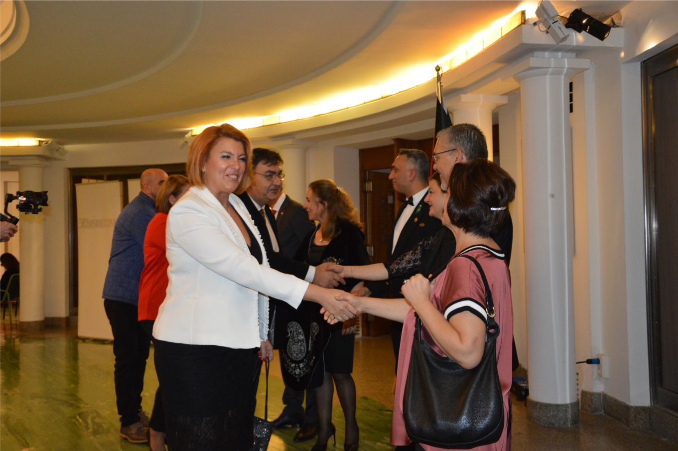 Konser öncesi Büyükelçi Levent Gümrükçü eşi Simay Gümrükçü, Askeri Ateşe Albay Haluk Erdem eşi Dilek Erdem, TÖSED Başkanı Melih Kızavul eşi Yasemin Kızavul davetlileri karşılayarak, tebrikleri kabul ettiler.