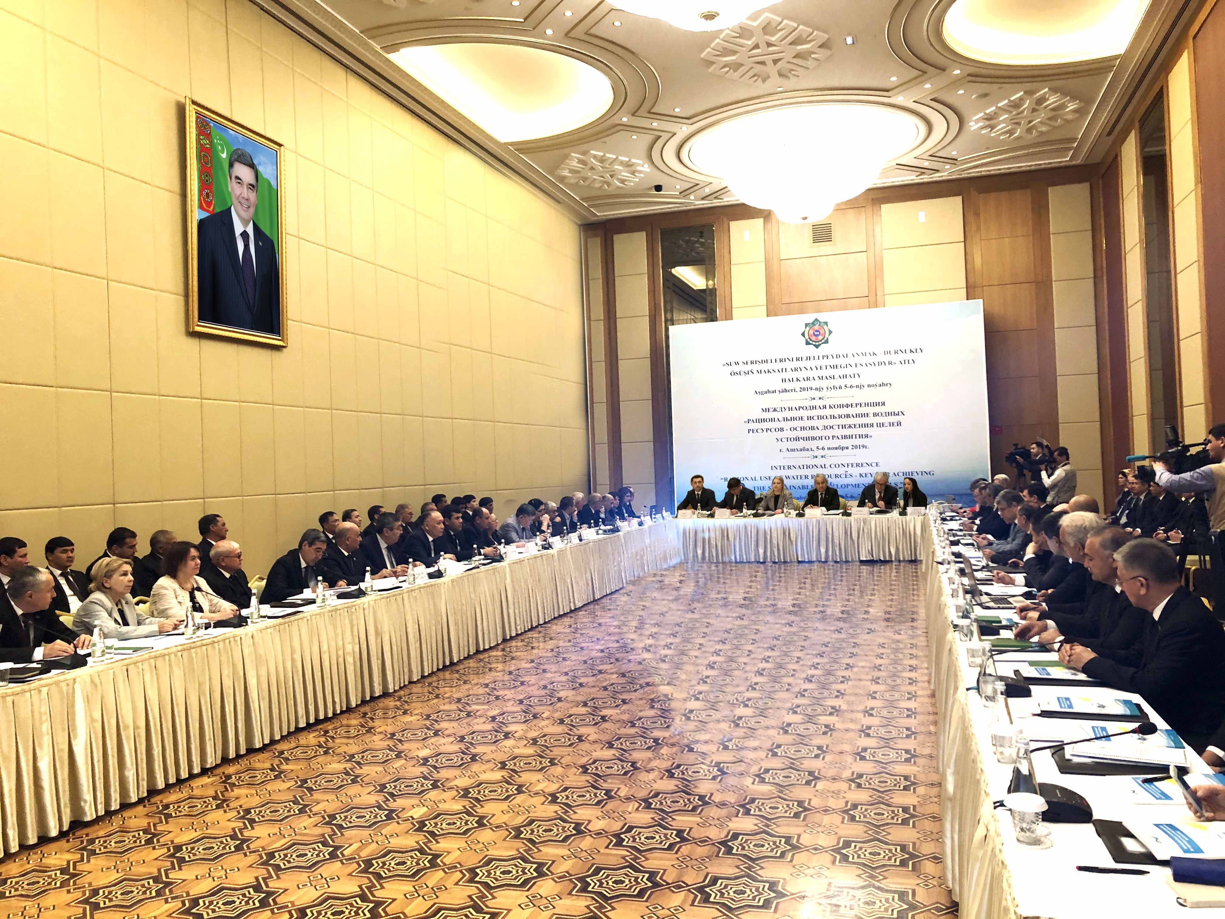 On November 5-6, 2019, the International Conference “Rational use of water resources – key for achieving the Sustainable Development Goals” was held in the hotel “Yildiz” of Ashgabat which gathered more than 60 experts from 10 countries of the world. The representatives of nine international and regional organizations which are implementing the projects in the field of water resources management took part in the work of the conference.