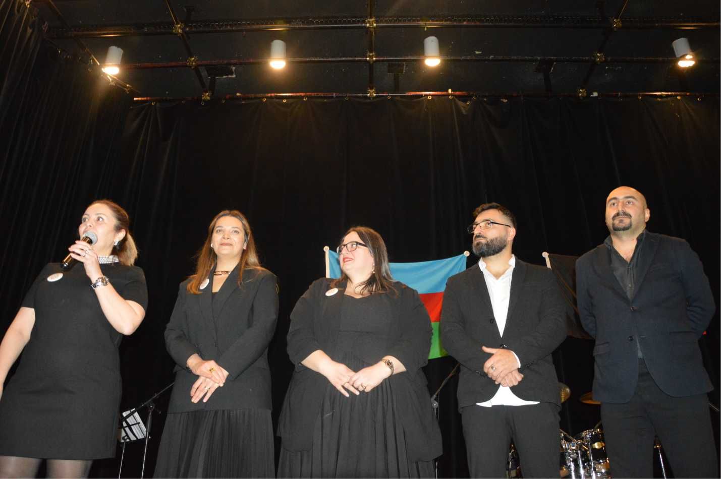 Etkinliğin müzikal bölümünde ise Hollanda'da yaşayan yurttaşımız Sadykh Agamaliyev, Azerbaycan klasik ve retro müziğinin yanı sıra türkülerini seslendirdi. Etkinlikte Belçika'da yaşayan yetenekli gençler Sabir Mustafayev (gitar) ve Mikayil Babayev (piyano) Azerbaycanlı bestecilerin şarkılarını seslendirdi.