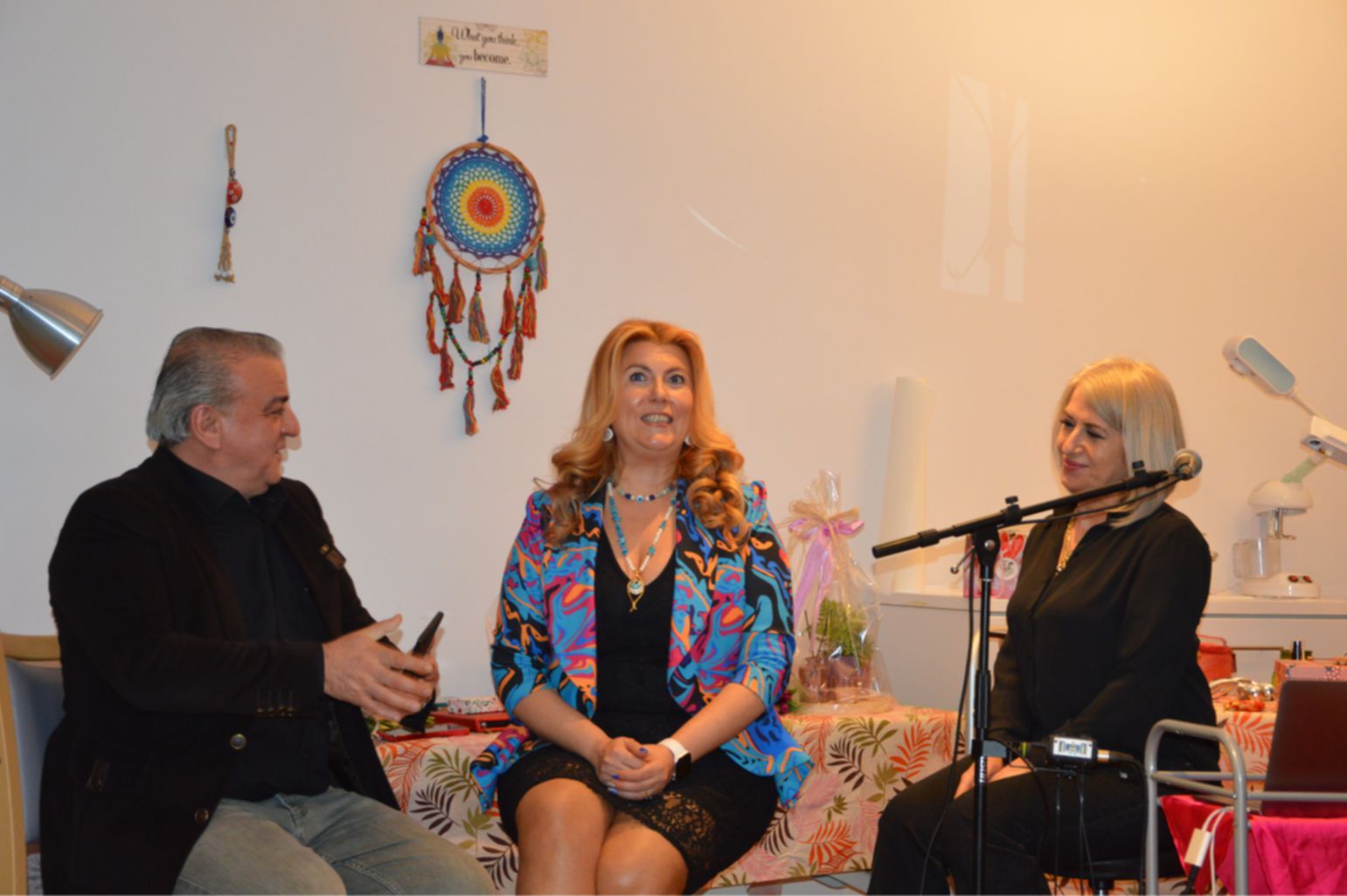 Astroloji ile ilgilendiğini ifade eden Kübra Özgüvenç, Kadınlar gününü kutlayarak başladığı konuşmasında: “Ben Özge hanımla ortak arkadaşlarım vesilesiyle tanıştım. İyi ki de tanışmışım. Ben aslında bilim okudum. Ancak ben kendimi başka bir kariyer yoluna soktum. Ben, 2016 yılında buraya geldikten sonra, aslında Astroloji çalışıyordum. Astrolojide, İnsanların özdeğerleri ile ilgili onlara destek olmak için bir şeyler anlattığını gördüm. Gördüğüm şeyleri adım adım ilerletirken, Siputer Ressam olarak, aslında yaptığım resimlerde insanların duygularını iyileştirmeleriyle ilgili Koçluk çalışmalarında bulunmaktayım” dedi.