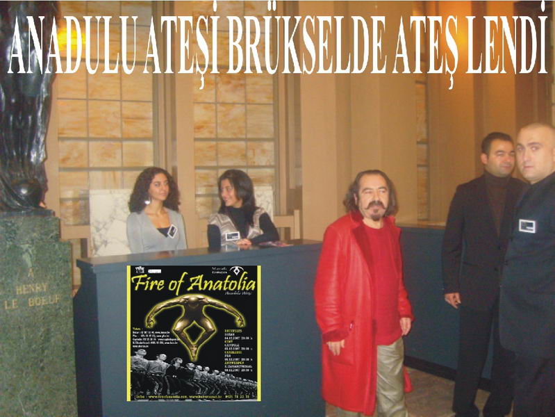 Belçika'da seri gösterilerde bulunacak olan Anadolu Ateşi ilk olarak Brüksel Bozar'da ateş aldı. Charleroi, Gent ve Antwerpen 'de de sahne alacak olan Anadolu Ateşi Belçikalıları adeta büyüledi. Belçika'da yaşayan Türklerinde yoğun olarak ilgi gösterdiği program zevkle izlendi. Anadolu'nun çeşitli yörelerinden oyunların sunulduğu gösteri zengin efekt ve ---özgün Anadolu müzikleriyle sahnelendi. Zaman zaman alkışlarla desteklenen gösterilerde seyirciler hoşca vakit geçirdiler. Baştan sona kadar Anadolu kültürünün görsel zenginliği ile dekore edilen gözterileri izleyen Belçikalılar hayranlıklarını gizletemediler. Resmi ricalin yanında siyasilerinde büyük ilgi gösterdiği program sonrası herkes memnuniyetini ifade etti. Anadolu'nun kültürel, görsel oyun ve danslarını başarılı bir şekilde sahneye koyan Anadolu Ekibinin Başkanı Sayın Mustafa Erdoğan ve Belçika Türk Kültür Sanat Vakfı Başkanı Sayın Ali Bağseven'e teşekkür ediyor Belçika Haber ekibi olarak kendilerini kutluyor, başarılarının devamını diliyoruz. ANADOLU ATEŞİ HAKKINDA Genel Yönetmen Mustafa ERDOĞANâın yönetimindeki Anadolu Ateşi, kaynağını Anadoluânun binlerce yıllık mitolojik ve kültürel tarihinden alan özgün bir projedir. Anadolu Ateşi, Anadoluânun binlerce yıllık sevgi, kültür ve tarih mozaiğinin barışla harmanlanan ateşini tüm dünyada temsil ederek tanıtmaktadır. Birinci bölüm, Anadolu ve Nemrutâun Kutsal Ateşi,âAteş Töreniâ, âIşık Irmaklarıâ, âAteş Danslarıâ, â Karanlığın Ordusuâ ve âAşk Ãçgenleriâ kreasyonlarından oluşan kısa parçaları kapsamaktadır. 40 kişiden oluşan dans gurubu, 500 kostümle, Anadoluânun oriyantal kültür, müzik, ritim ve figürlerini yansıtmaktadır. Bu muhteşem dans gösterisi, iyilerin kötülere karşı verdiği savaşın müzikal görsel anlatımıdır. Ikinci bölüm, iyilerin kötülere karşı kazandığı zaferle sona erer. Anadolu Ateşi, âAydinlik Ordusuâ ve âHayata Dönüşâ oyunlarıyla barıs çagrısında bulunur. Anadolu Ateşi, son 90 dakikalık sürede, muhteşem bir dans gösterisi ile Pandoraânın öyküsünü canlandıracaktır. Anadolu Ateşi, mükemmelliği sahne performasına yansıtan dünyanın en iyi dans topluluğundan biridir. www.belcikahaber.be