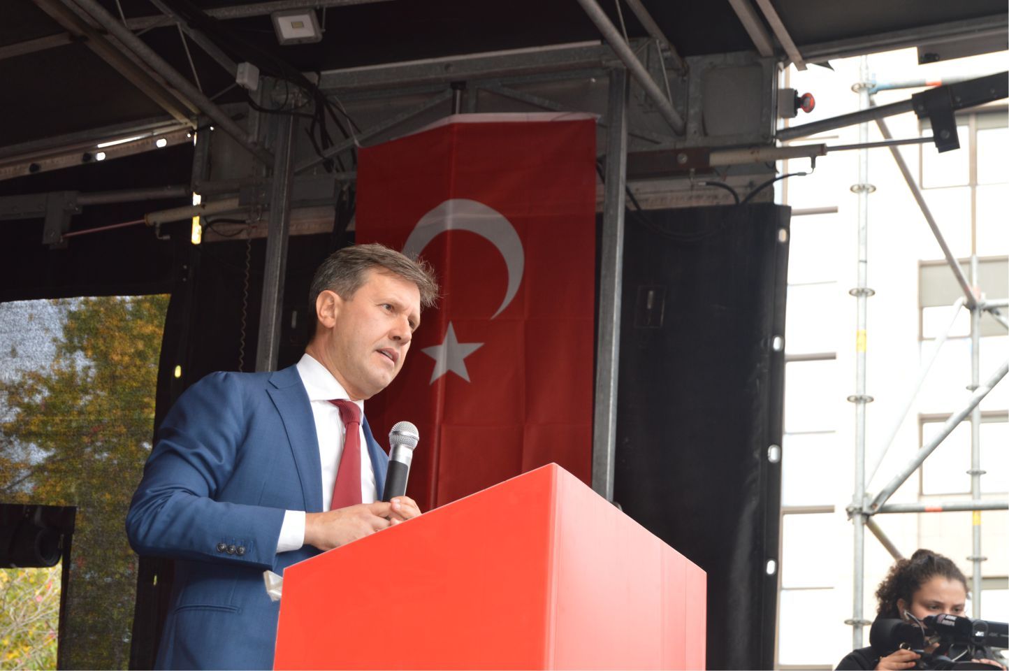 Avrupalı yetkililerinde hazır bulunduğu miting’de ‘Sizler Avrupalı Türkler’ olarak ülkemizin ve halkımızın temsilcilerisiniz” dedi.