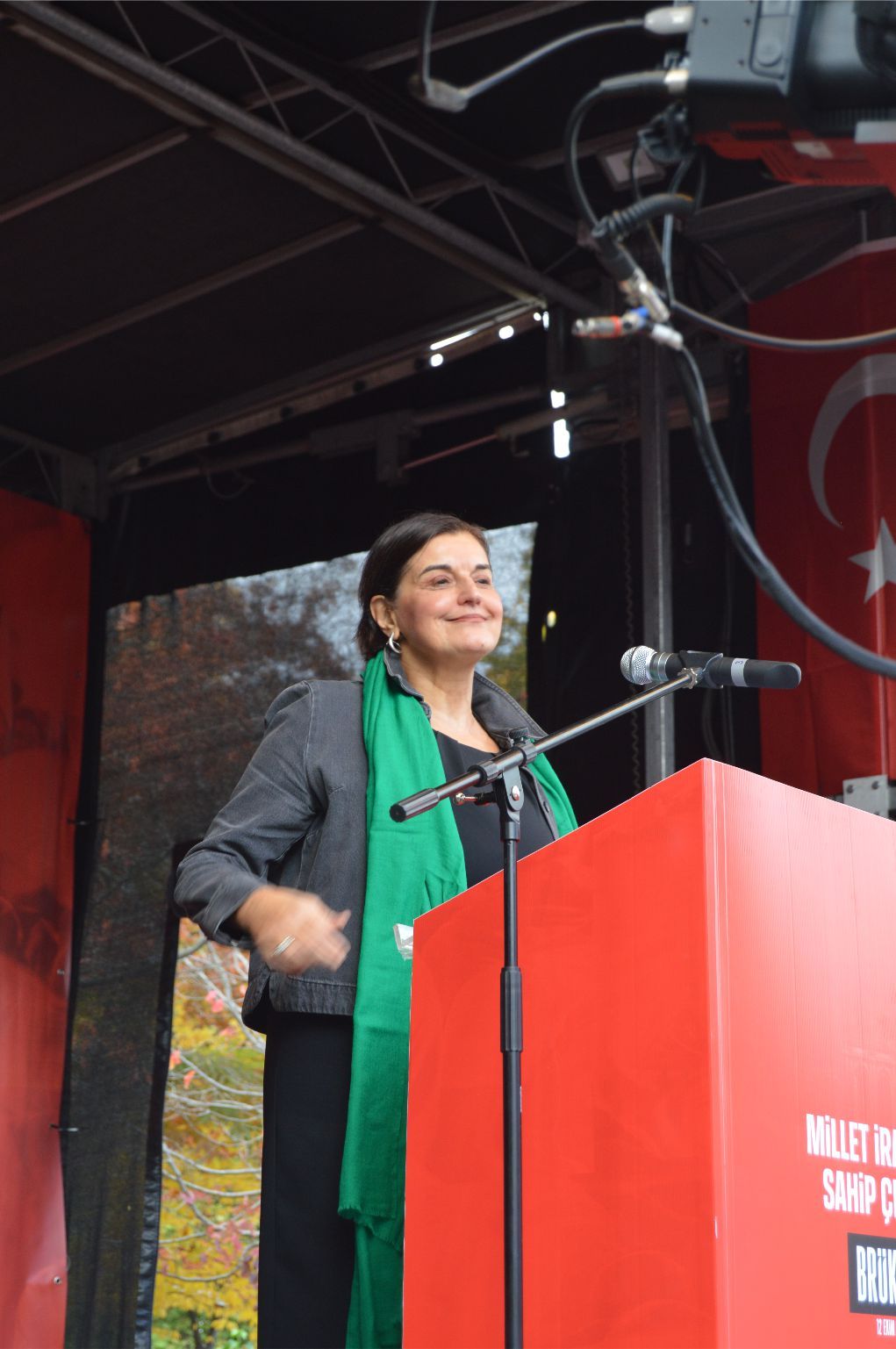 Hasreti bitireceğiz, güzelim memleketimin güzel insanlarıyla burada da orada da omuz omuza, kol kola yepyeni bir geleceği hep birlikte inşa edeceğiz. Biz Brüksel’e şikayet etmeye de kavga etmeye de değil; dayanışmaya, moral bulmaya, güç almaya, güç vermeye geliriz. Bundan sonra da Avrupa’nın her yerinde sizlerle birlikte olacağız, meydanlara sığmayıp taşıyacağız. Yarınları birlikte kuracağız. Güzel memleketimin güzel insanları, hepinizi saygıyla selamlıyorum. İyi ki varsınız. Buraya Avrupa’daki birliklerimizin değerli başkanlarını davet ediyorum. Değerli yoldaşlarımızı davet ediyorum. Burada Avrupa Konseyi’nden gelen, Avrupa Parlamentosu’ndan gelen kardeş partilerden gelen temsilcilerimizi, misafirlerimizi ve Avrupa’daki birliklerimizin değerli başkanlarını buraya davet ediyorum. Ve güzel memleketimize bir selamımızı hep beraber yolluyoruz, hep beraber gönderiyoruz.”