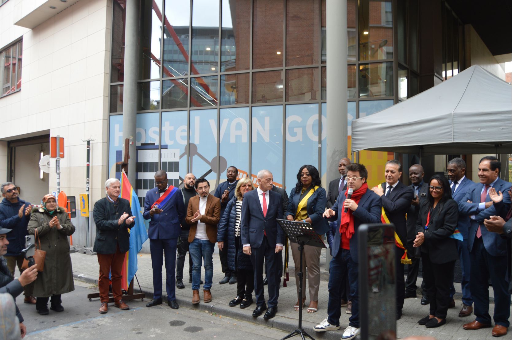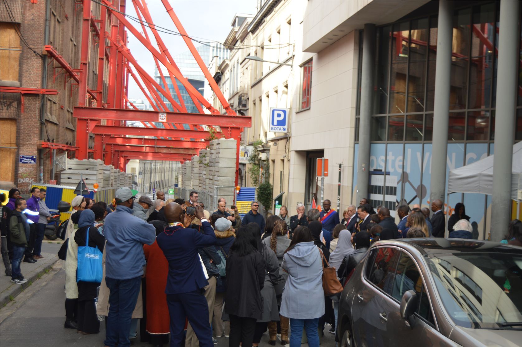 Plaket açılış ve takma törenine bazı Brüksel Milletvekilleri, Saint Josse Belediye Başkan Yardımcıları, Meclis Üyeleri, Kongo Büyükelçilik ve Konsolosluk Çalışanları, İlk gelenlerin torunları, STK Temsilcileri ve kalabalık davetli topluluğu katıldı.