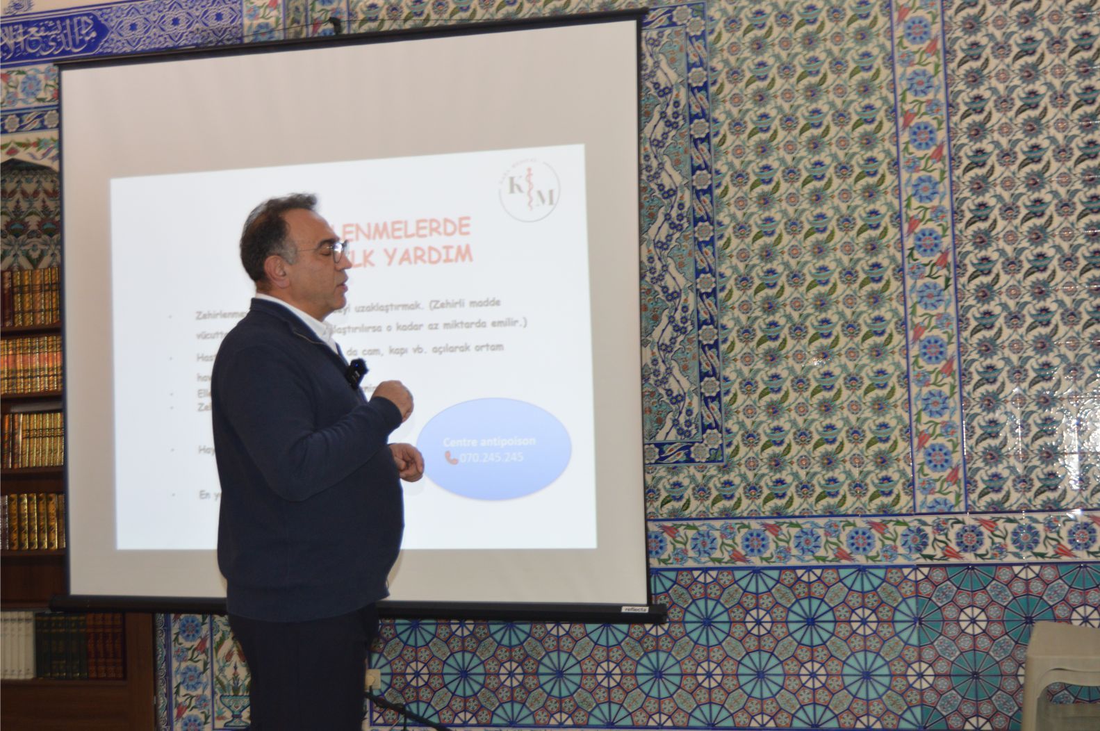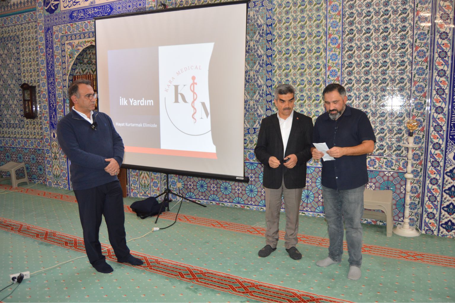 Dr. Kara, sözlerinin başında: “Bu güzel Seminerimize ev sahipliği yapan Fatih Camii Dernek Yönetimine’ teşekkür ediyorum” diyerek, başladığı konuşmasında “Sağlığın önemli olduğunu, Sağlıkta olası kaza ve rahatsızlıklarda ilk yapılacaklar hakkında” vatandaşları uyararak, “bu konuda, özellikle vatandaşlarımızın yoğun olduğu yerlerde İlk yardım malzemeleri ve bazı önemli aletlerin hazır bulunmasının çok yararlı olacağı” konusunda uyarılarda bulunarak, sözlerine başladı.