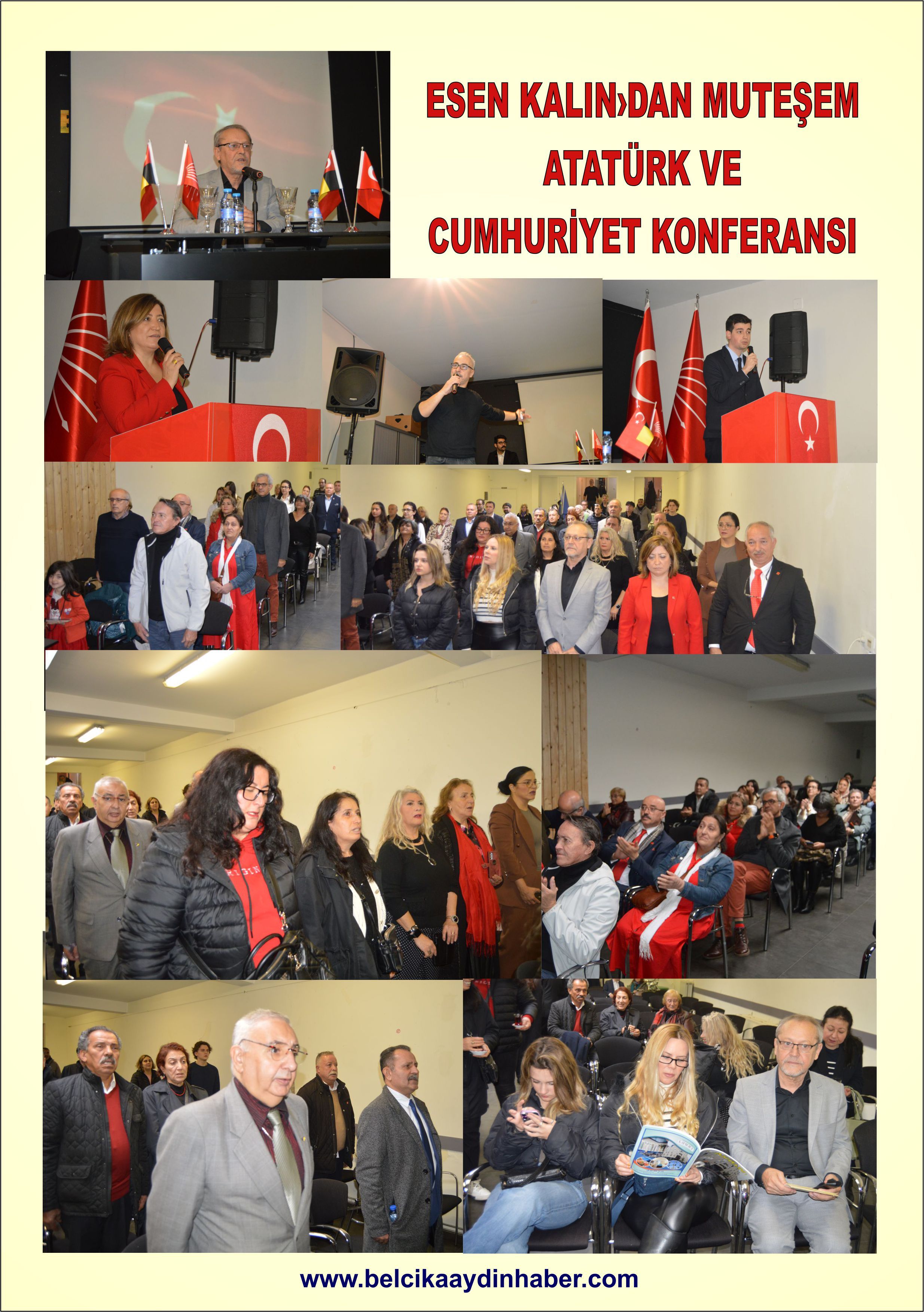 CHP Belçika Birliği Başkanı Derya Bulduk’un ev sahipliğinde gerçekleştirilen Konferans’ta Yapım ve Yönetmenliğini Altay İkizler’in yaptığı ve başarılı Radyo program Yapımcısı ve sunucusu Esen Kalın’ın sunumunu yaptığı ’10 Kasım Sabahı’ ve ‘Atatürk’ü Anma Video’nun, izlenmesi ardından, düzenlenen integratif konferans’da Kalın, önemli mesajlar verdi.