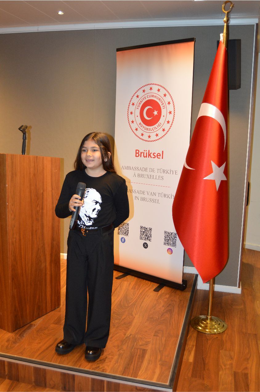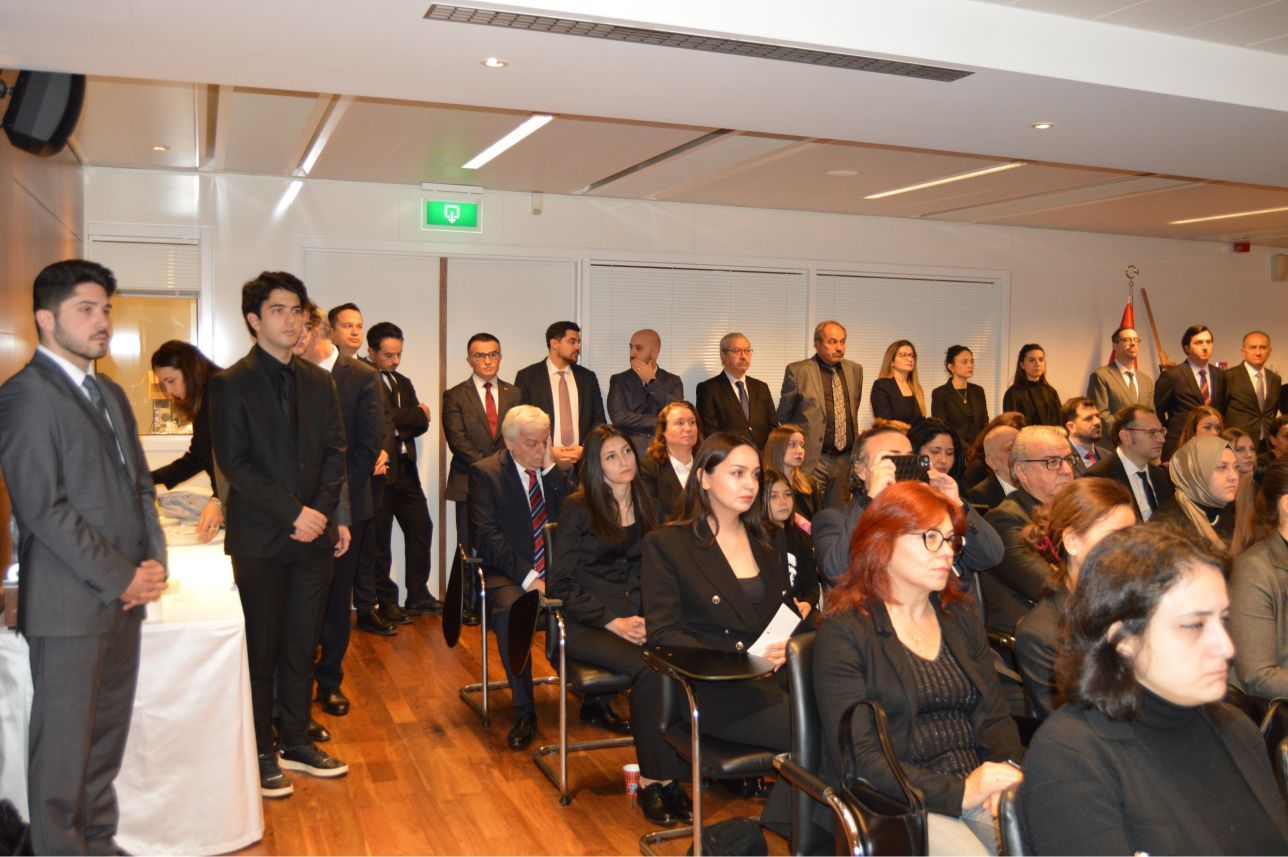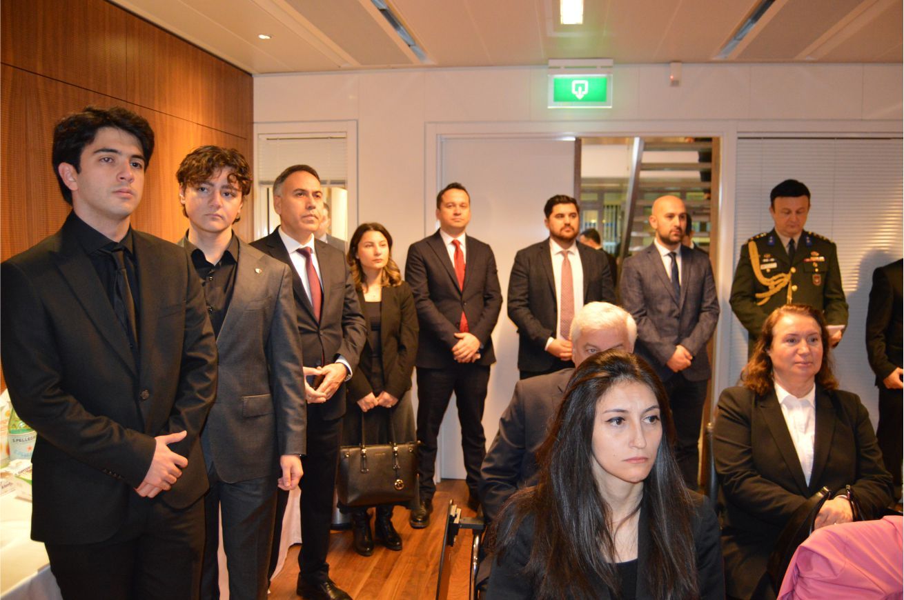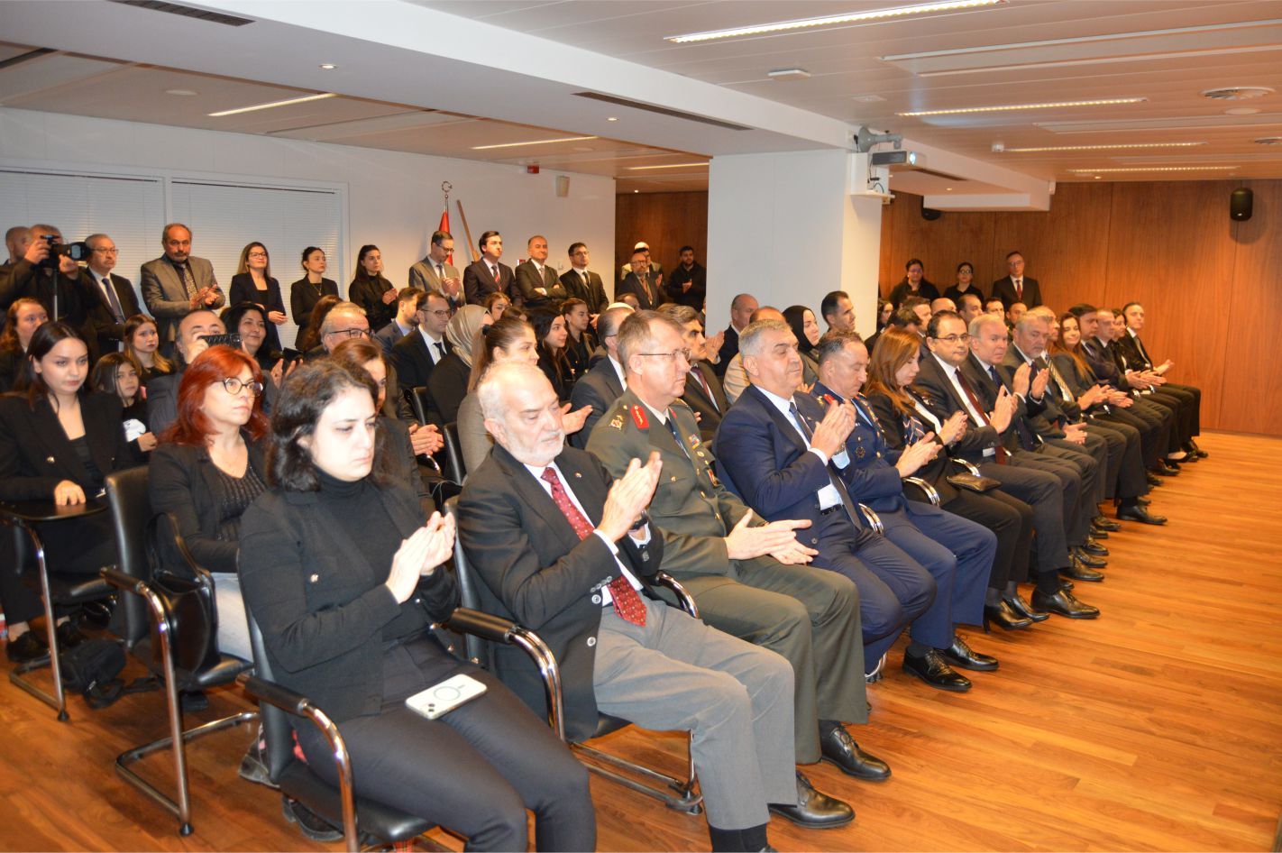 Türkiye'nin Brüksel Büyükelçiliğinde Büyükelçi Barış Tantekin'in ev sahipliğinde yapılan tören, Atatürk ve silah arkadaşlarının anısına saygı duruşu ve İstiklal Marşı'yla başladı.
