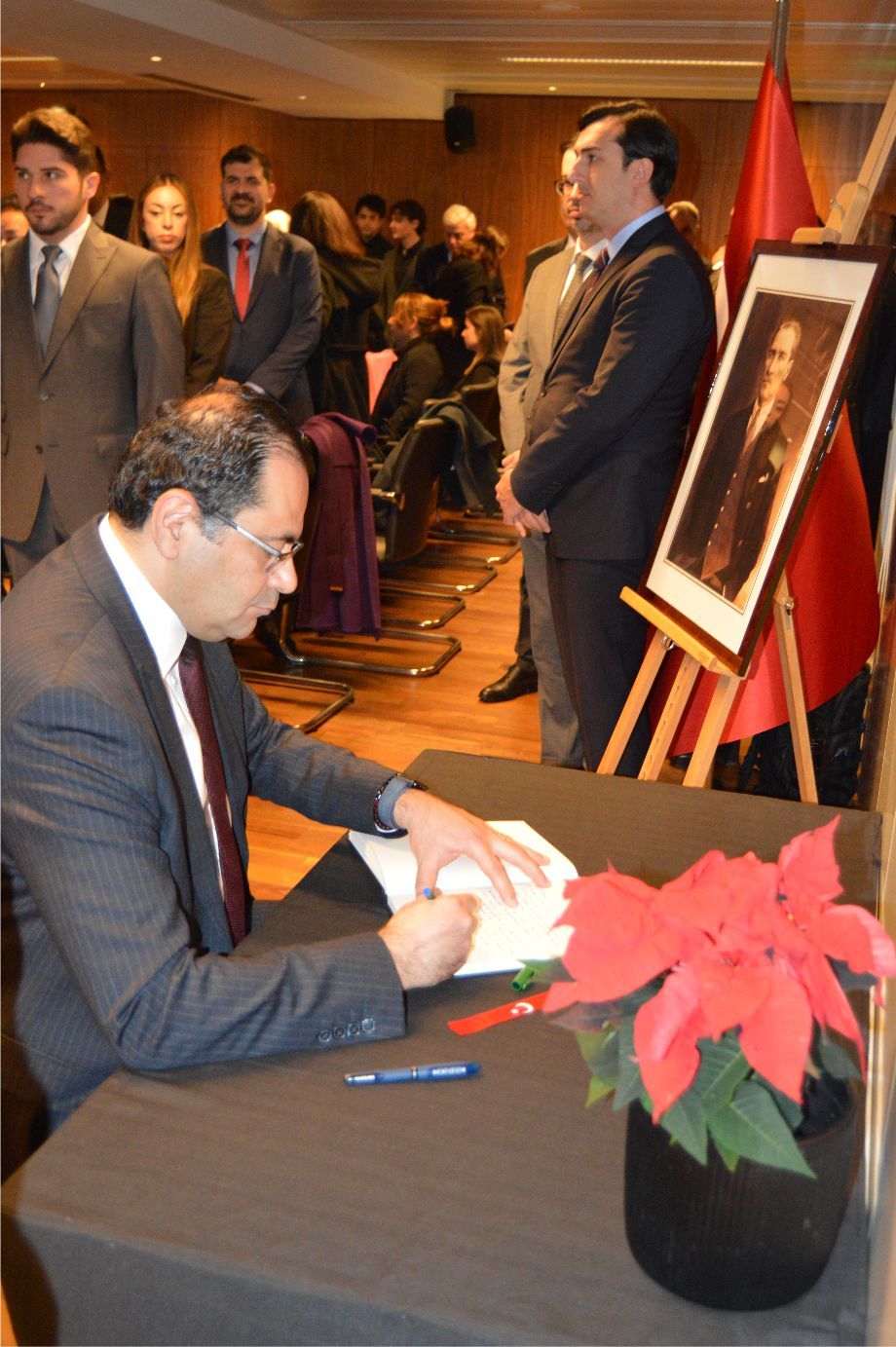Törenin sonunda katılımcılar, Büyükelçi Tantekin'in Atatürk'ün anısına açtığı defteri imzaladı. İlk olarak Büyükelçi Görkem Barış Tantekin ve diğer tüm davetliler duygularını ifade ederek, defteri imzaladılar.
