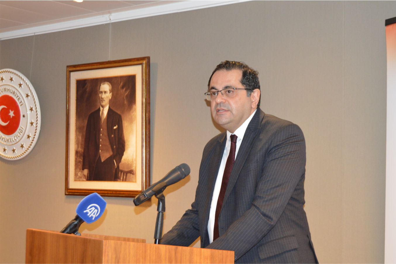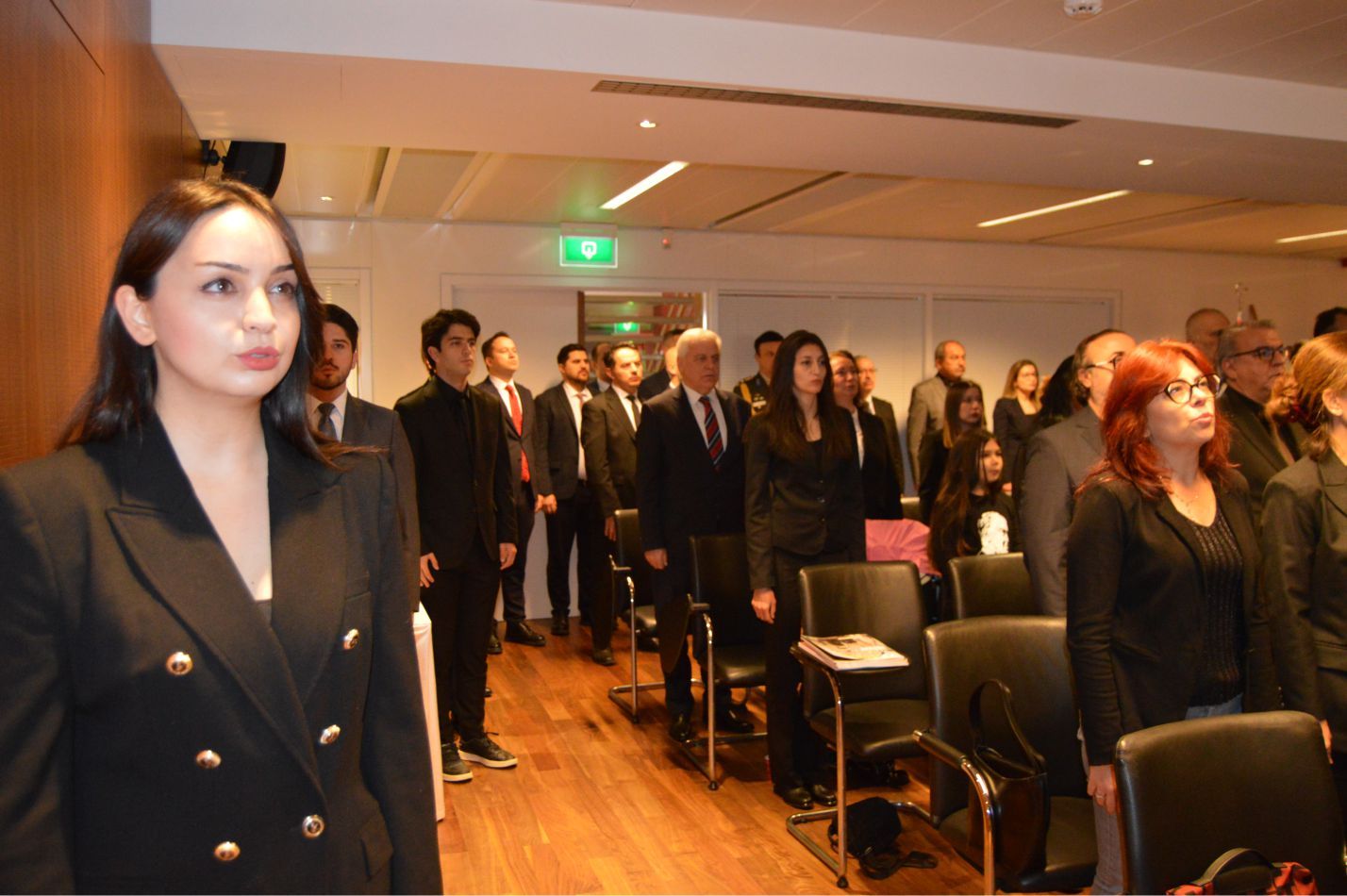 Askeri Ateşe Albay Ramazan Türkmen de Atatürk'ün vefatının dünya liderlerinin ve basınının nezdinde yankılarını aktaran sunum yaptı.