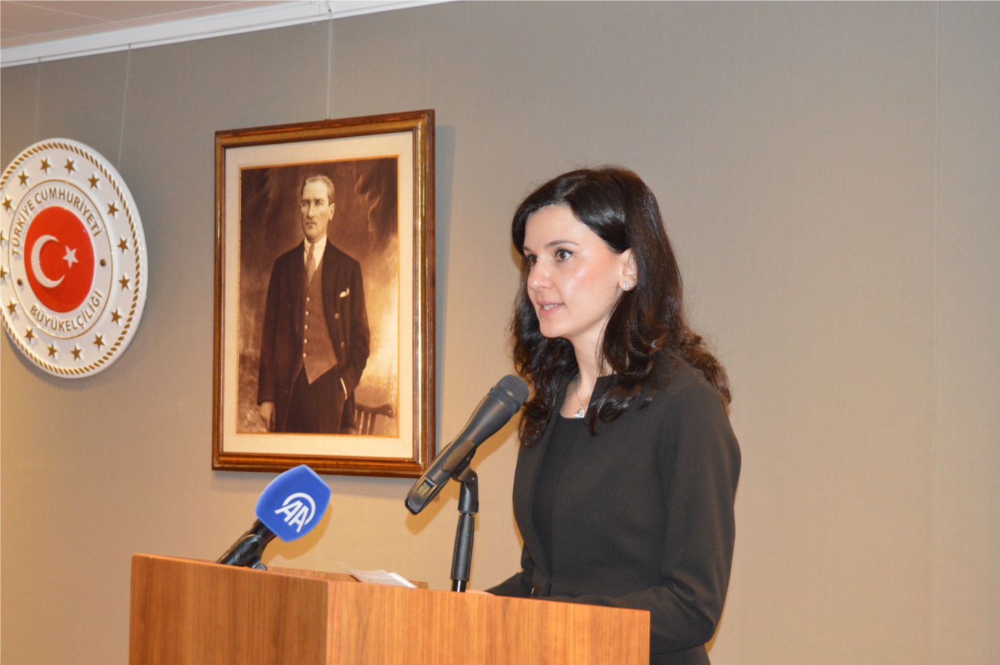 Törende konuşan Üçüncü Katip Meryem Merve Kahya, Atatürk'ün temellerini attığı çağdaş, laik ve demokratik cumhuriyetin kadınlara Avrupa'nın birçok ülkesinden önce seçme seçilme hakkı tanıdığına değinerek, bir kadın diplomat olarak cumhuriyetin kazandırdığı haklara minnettarlığını dile getirdi.