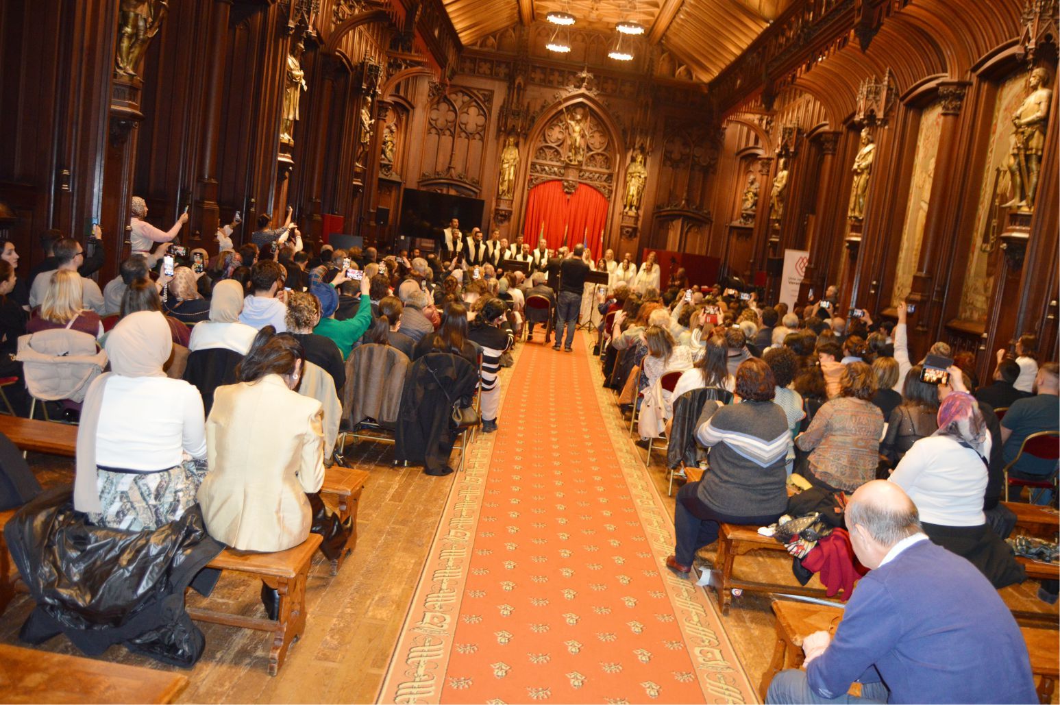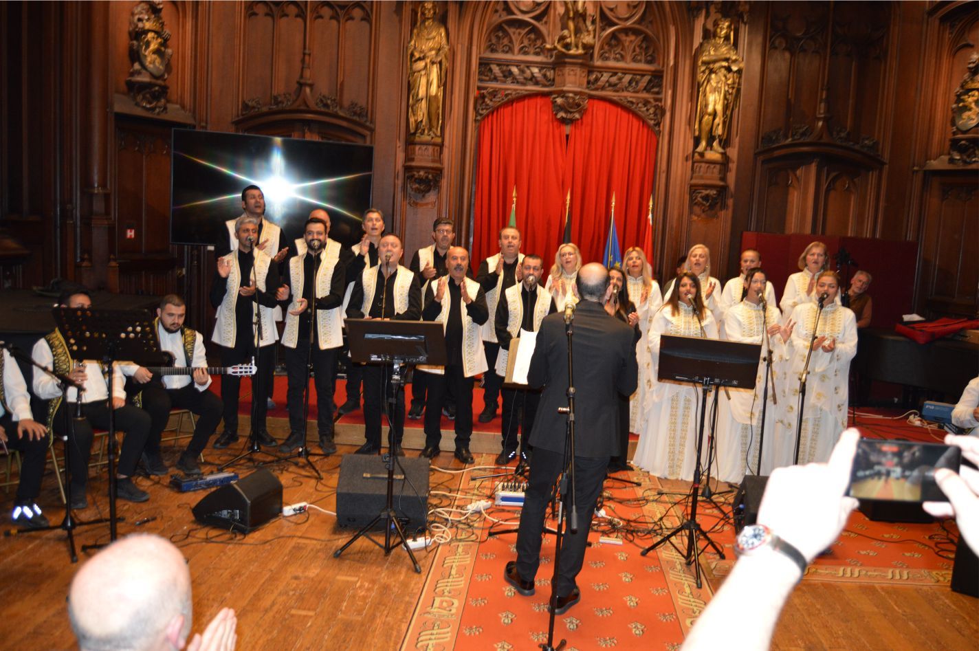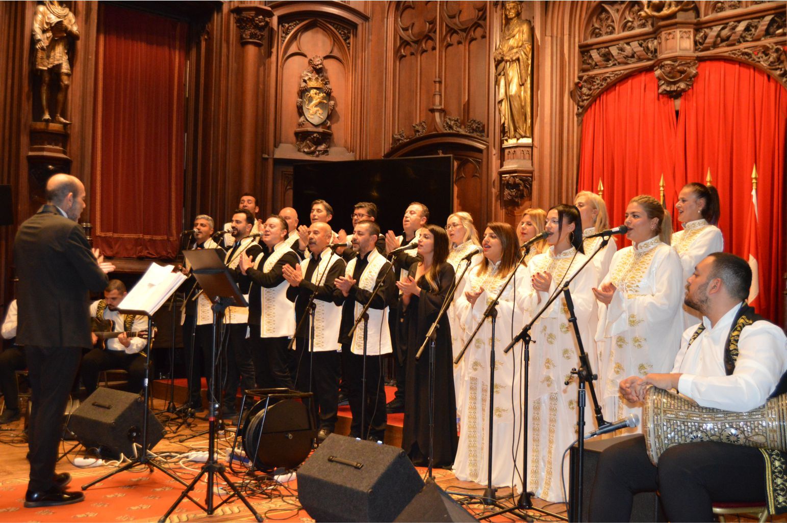 Aktif Dernekler Federasyonu’nun organizasyonu ve ‘Dinlerarası Platformu’un katkıları ile birlikte, Brüksel Belediye Salonu’nda muhteşem bir konsere imza atan ‘Antakya medeniyetler Korosu’ Şef Yılmaz Özfırat’ın başarılı Şefliğinde görkemli bir dinletiye daha imza attılar.