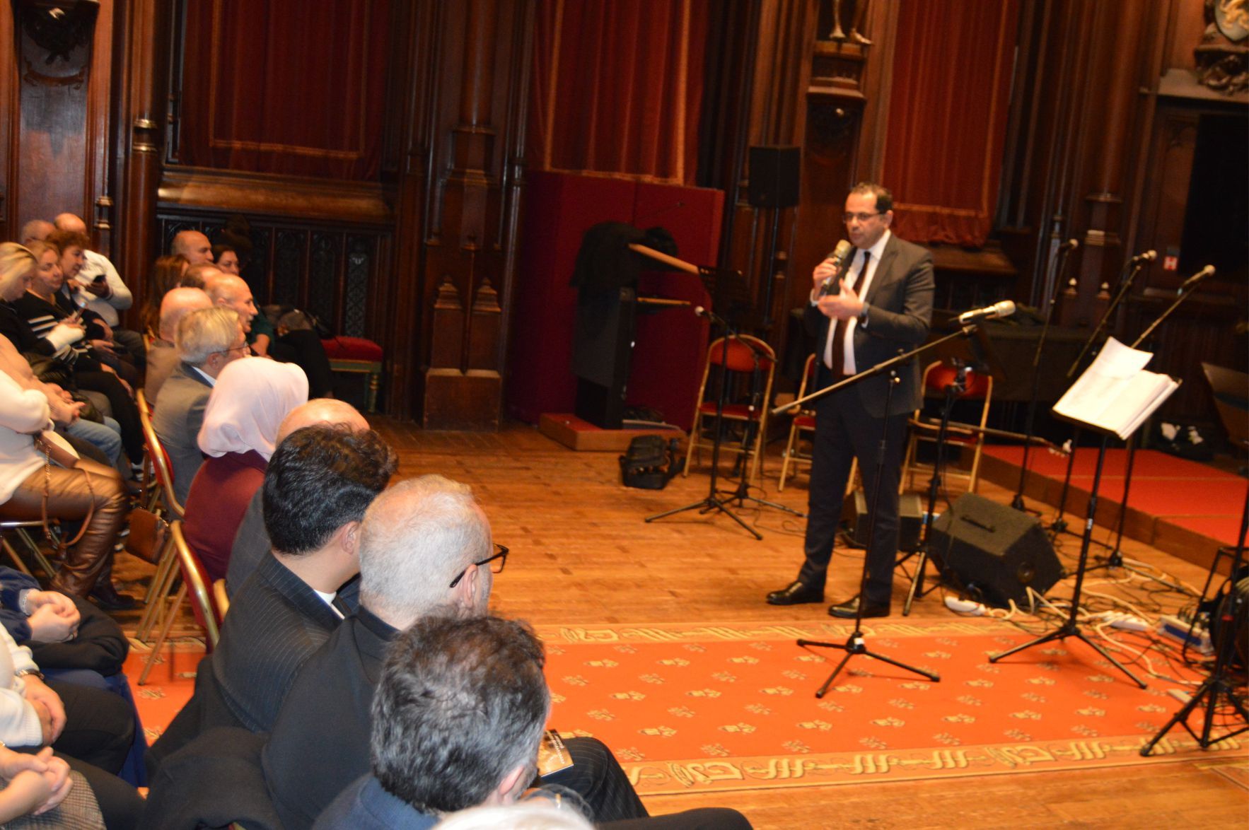 Brüksel Milletvekili Şevket Temiz’in insiyatifiyle, hazırlanan salonda, Aktif Dernekler Başkanı Hüseyin Aydınlı, Belçika Türkse Unie Başkanı Rıfat Can ve Dinlerarası Diyalog Başkanı Mehmet Üstün birlikte, davetlilerini karşıladılar.