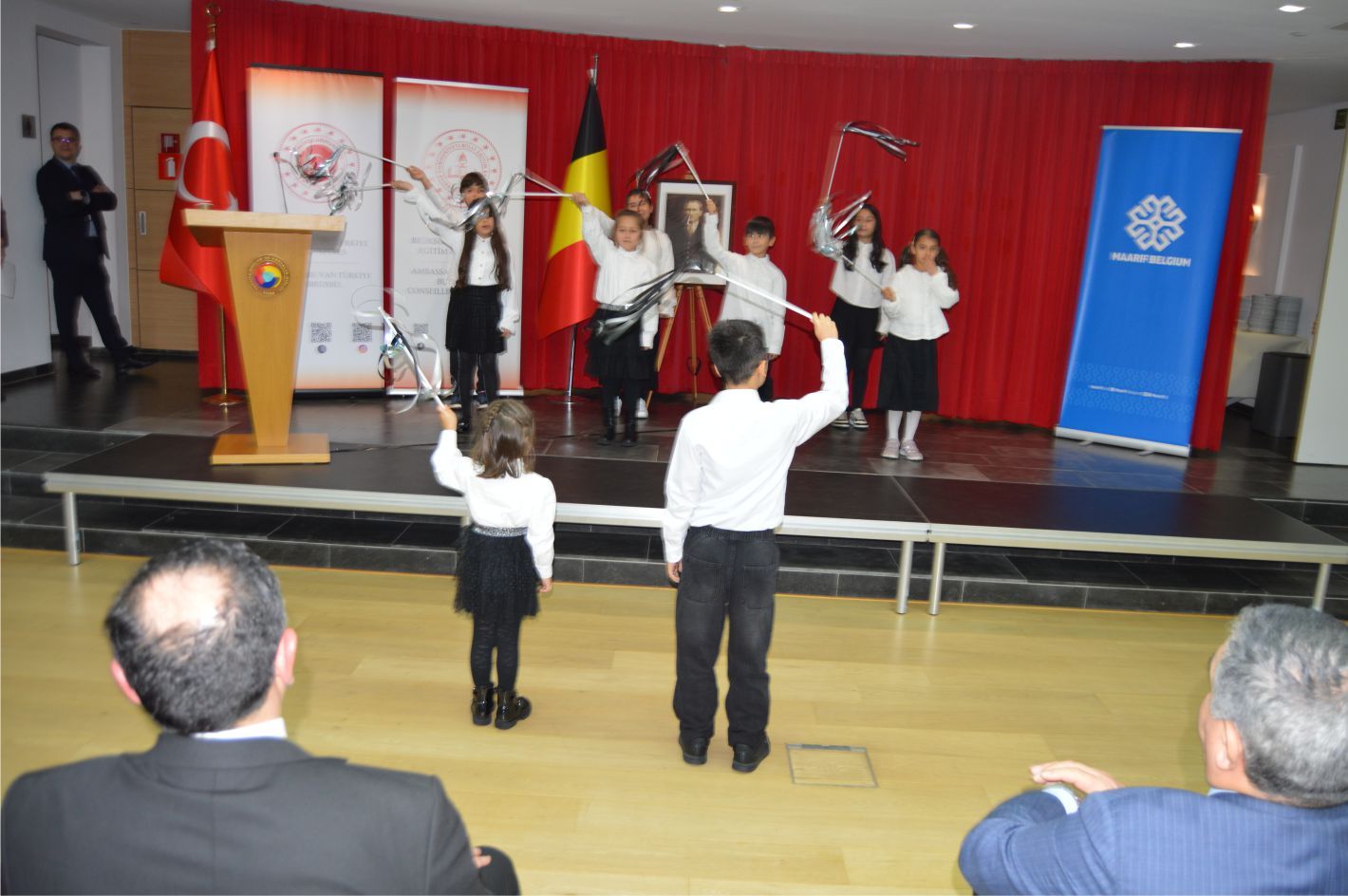 Programa, T.C. Brüksel Büyükelçisi Görkem Barış Tantekin, Sefire Damla Tantekin, AB Nezdinde Daimi Büyükelçi Faruk Kaymakçı, T.C. Brüksel Başkonsolosu Onur Sevim, Büyükelçilik Maslahatgüzarı Özgür Çakar, Tümgeneral Kemal Turan, Tuğgeneral Serkan Bircan, Tuğgeneral Ümit Ersoy, Askeri Ateşe Ramnazan Türkmen ve eşleri, Maarif vakfı Brüksel Başkanı Büşra Doğan, STK Temsilcileri, Sanatçılar, İşadamları, Türkçe ve Türk Kültürü Öğretmenleri, Öğrenciler ve Öğrenci Aileleri yanında kalabalık davetli katıldı.