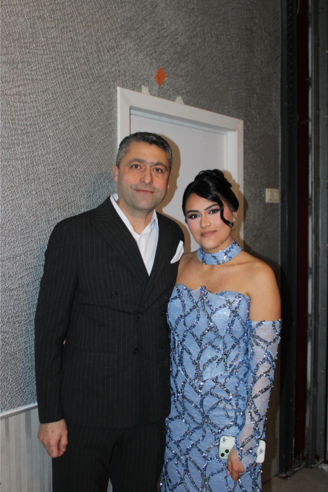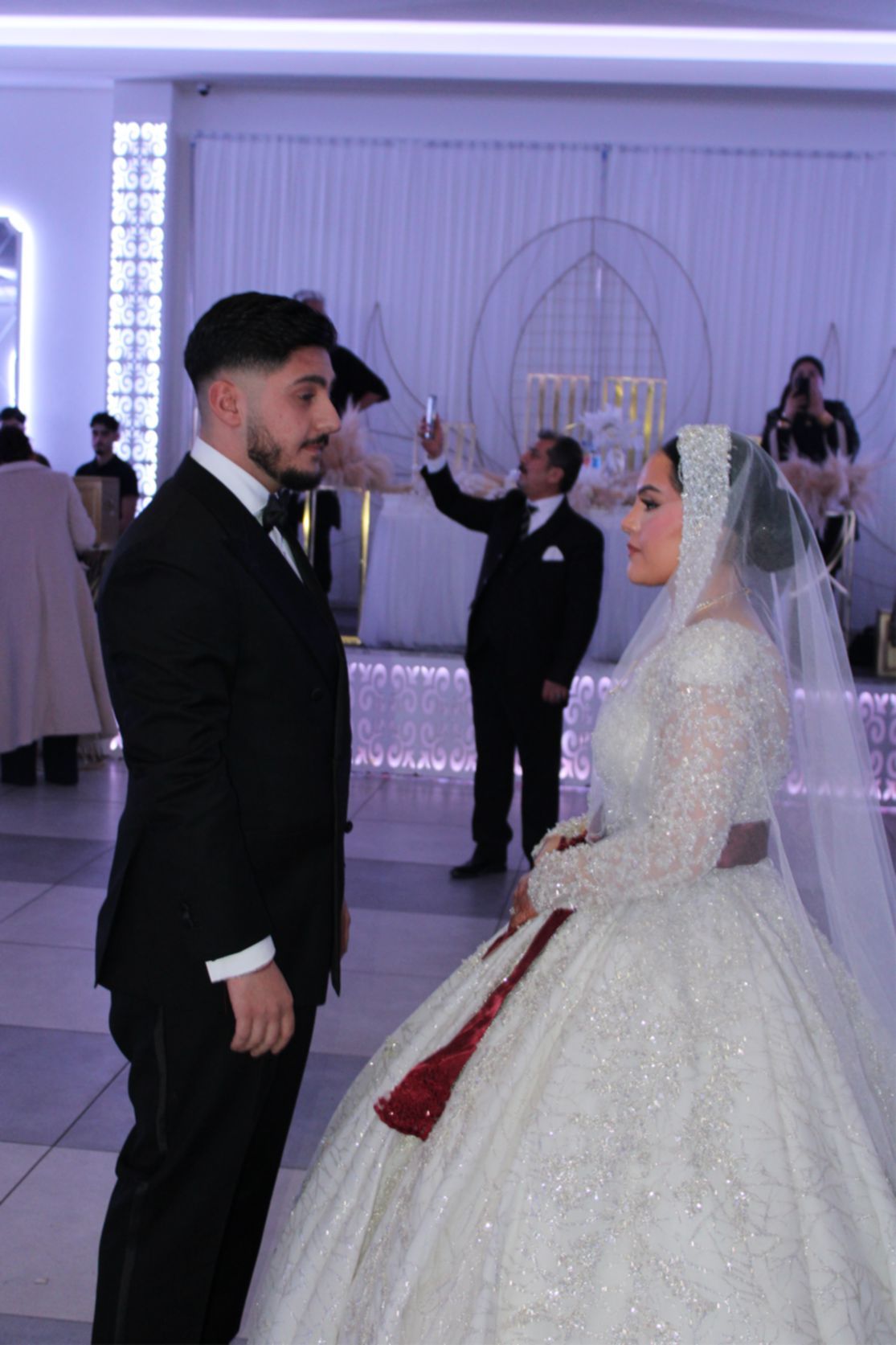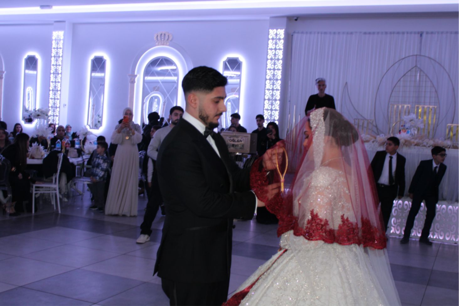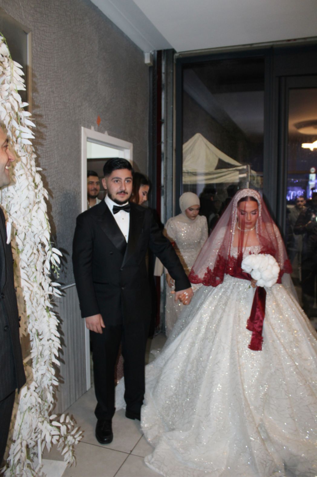 Gelin ile Damat’ın alkışlar ve ‘Barak Ovası’ davullar eşliğinde sahneye gelmesiyle, düğün töreni start aldı. Damat Gelin’e altın bir kolye hediye ederek, gelin’in duvağını açıp alnından öpmesi, alkışlarla karşılandı. Daha sonra, son teknoloji görseller eşliğinde Gelin ile Damat ilk danslarını yaptı. Gelin ile Damat’ın dansına bazı davetlilerde, eşleriyle birlikte eşlik ettiler.